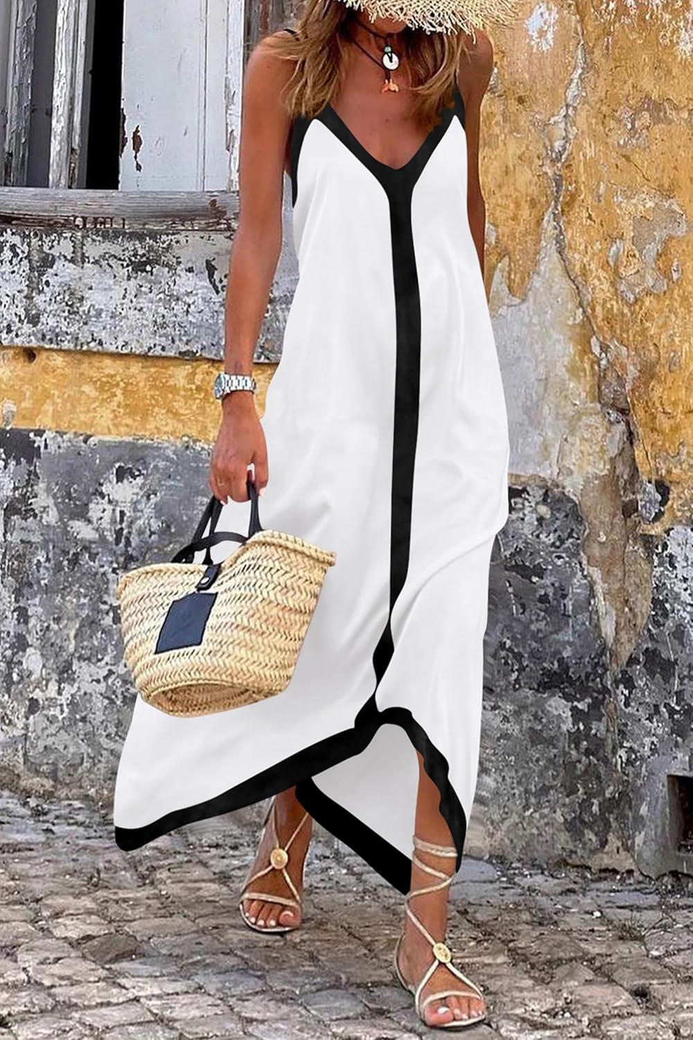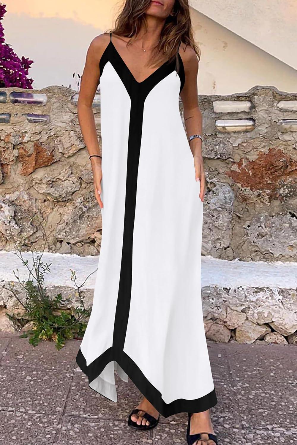 PRETTYGARDEN Women’s 2025 Summer Maxi Dress Sleeveless V Neck Spaghetti Strap Flowy Elegant Holiday Party Dresses(White)