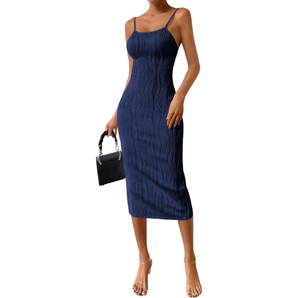 PRETTYGARDEN Women’s 2025 Summer Sleeveless Bodycon Dress Textured Back Slit Sexy Cocktail Party Midi Dresses(Navy)