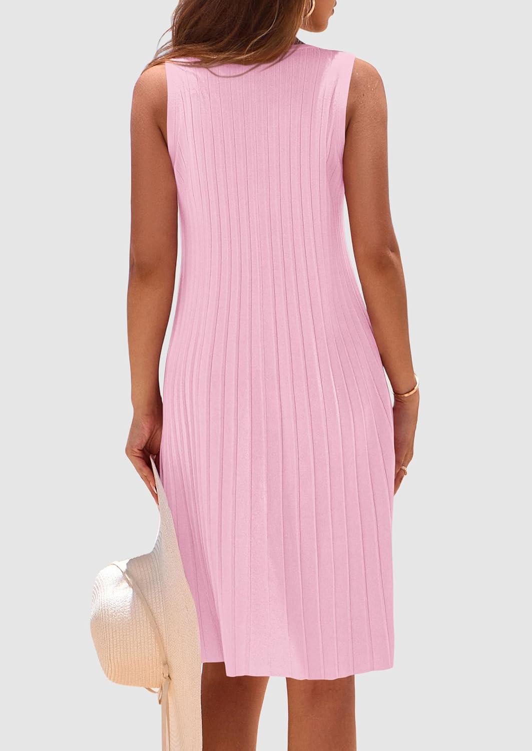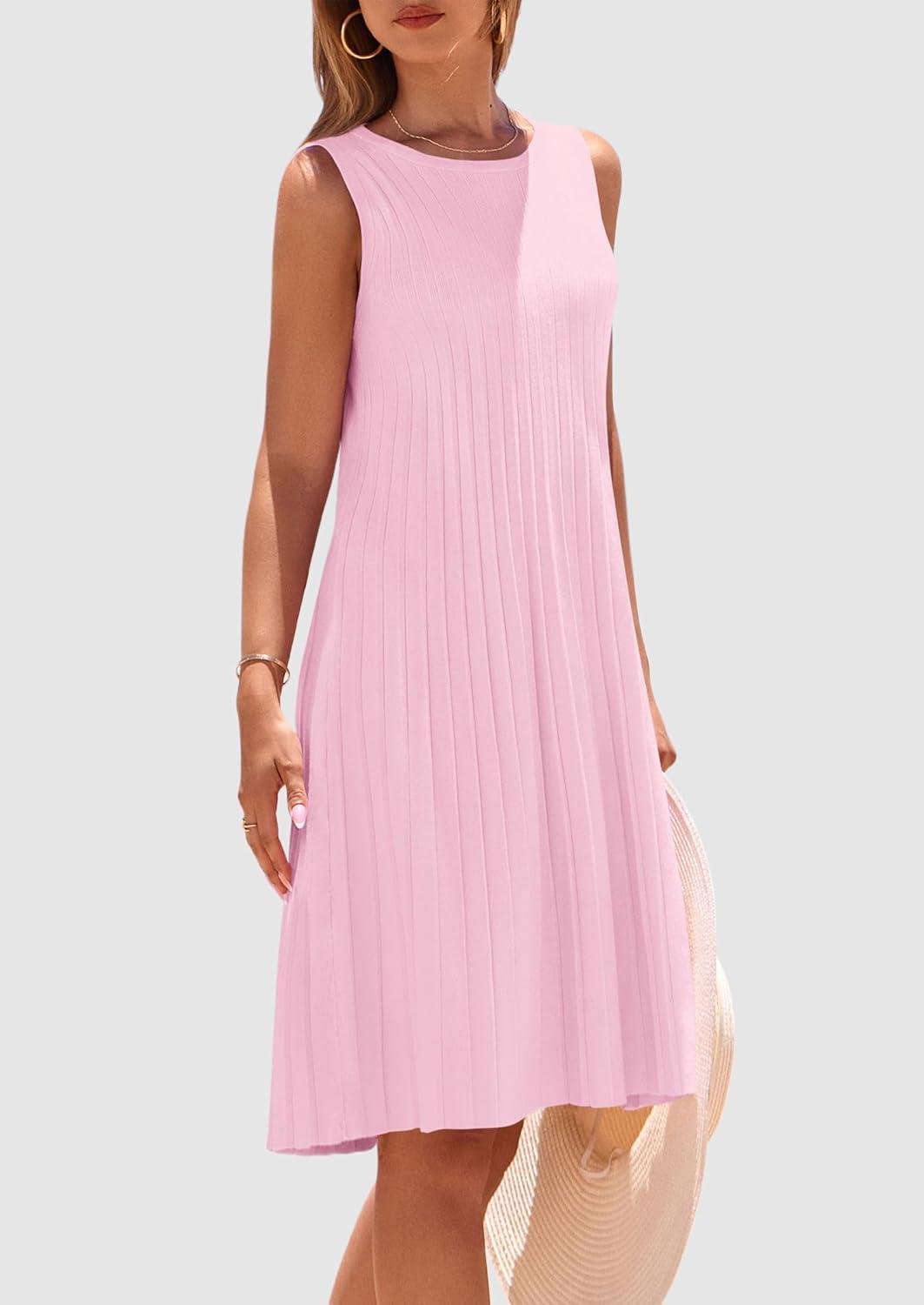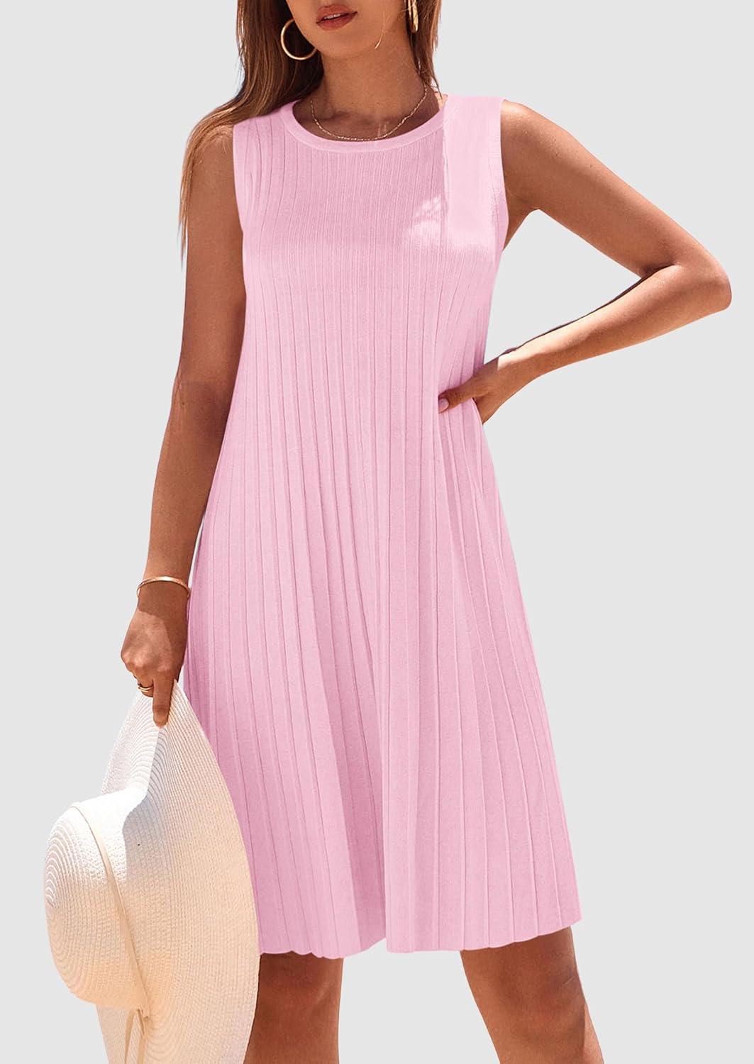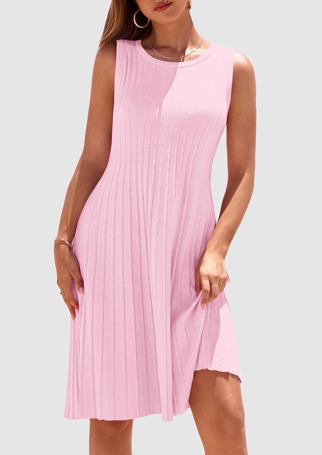 PRETTYGARDEN Womens 2025 Summer Sleeveless Mini Dress Crewneck Loose Tank A Line Pleated Swing Flowy Party Dresses(Light Pink)