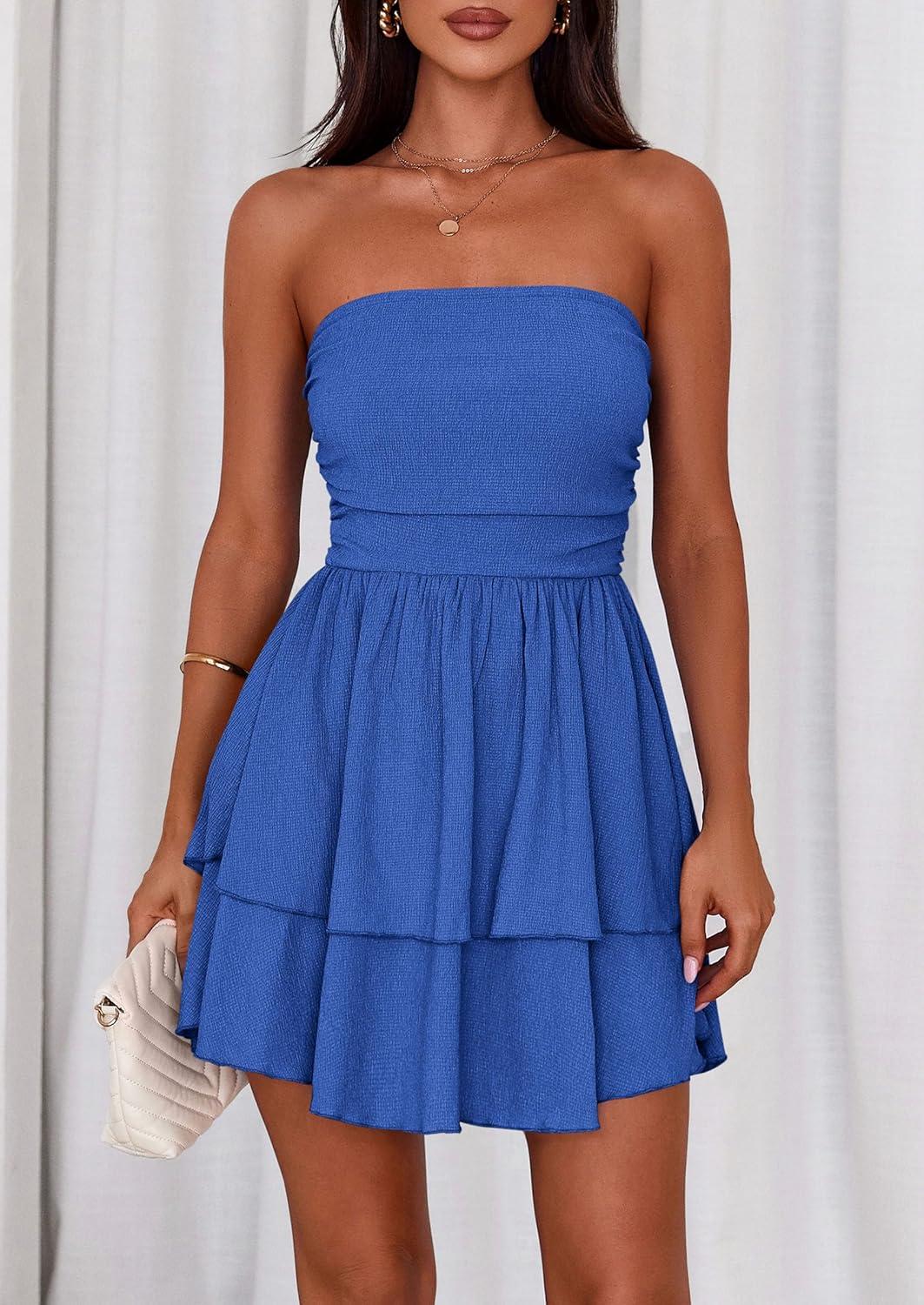 PRETTYGARDEN Women’s 2025 Summer Strapless Tube Mini Dress Off Shoulder Smocked Ruffle A Line Flowy Short Party Club Dresses(Royal Blue)