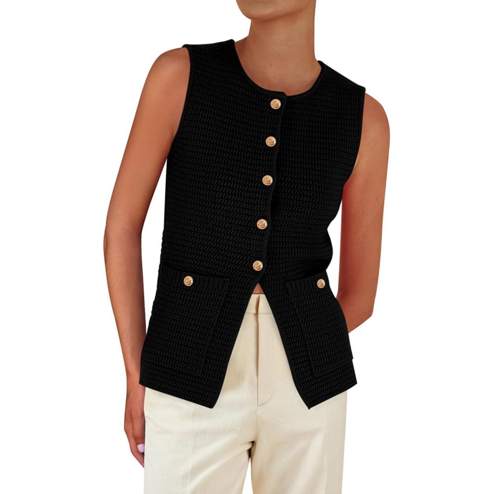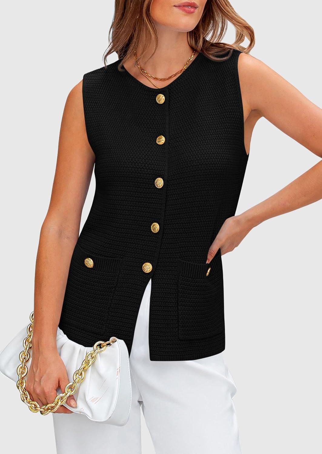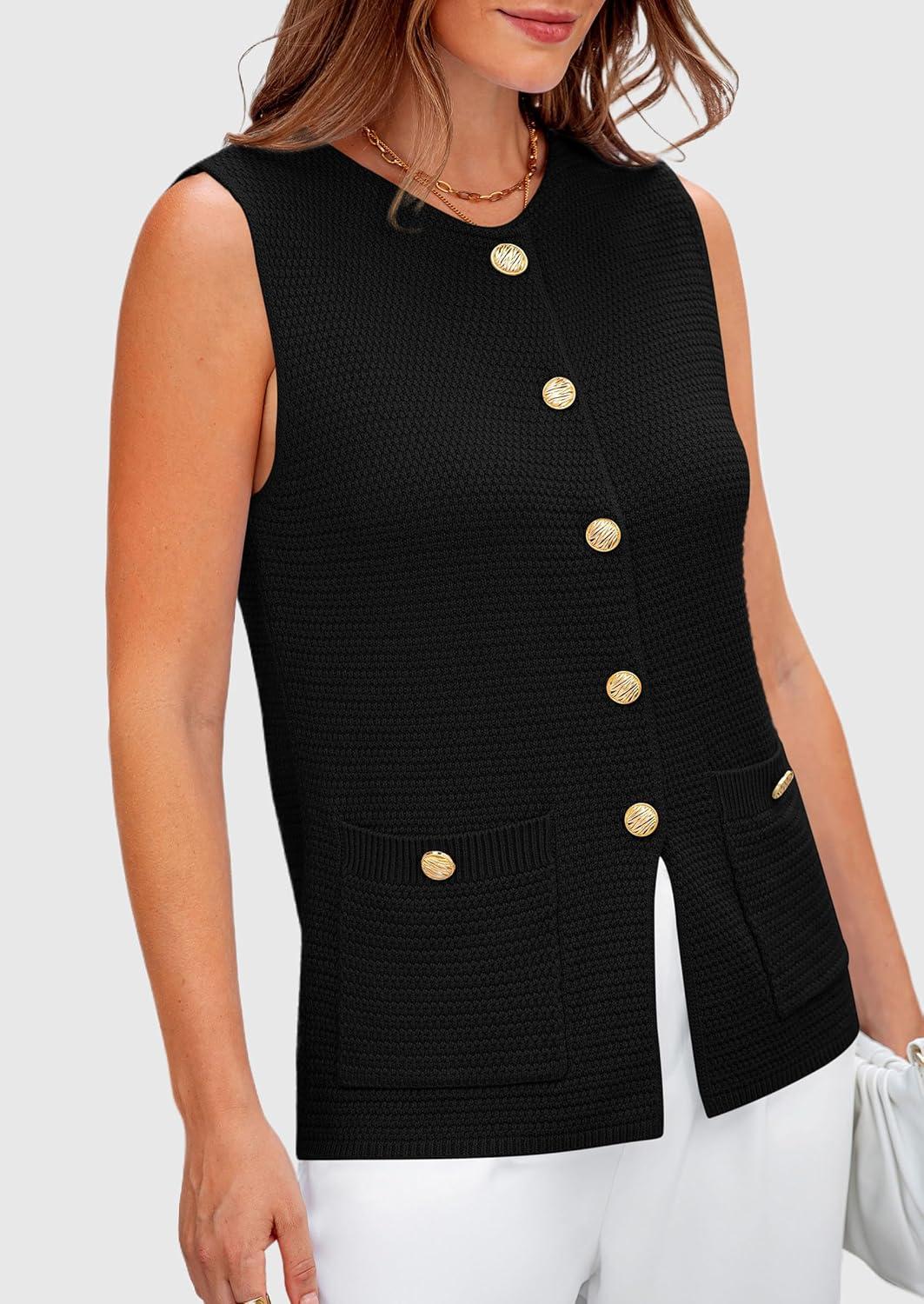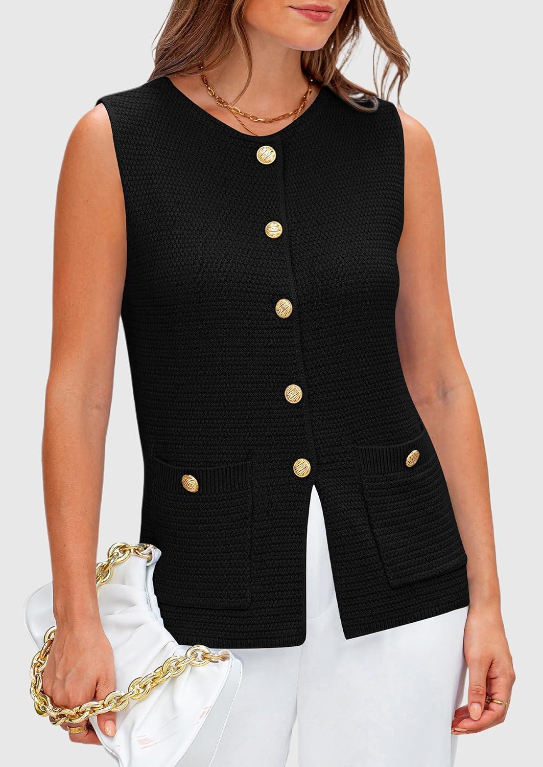 PRETTYGARDEN Women's 2025 Summer Sweater Vest Sleeveless Knit Cardigan Button Down Tank Tops Trendy Business Casual Outfits(Black)