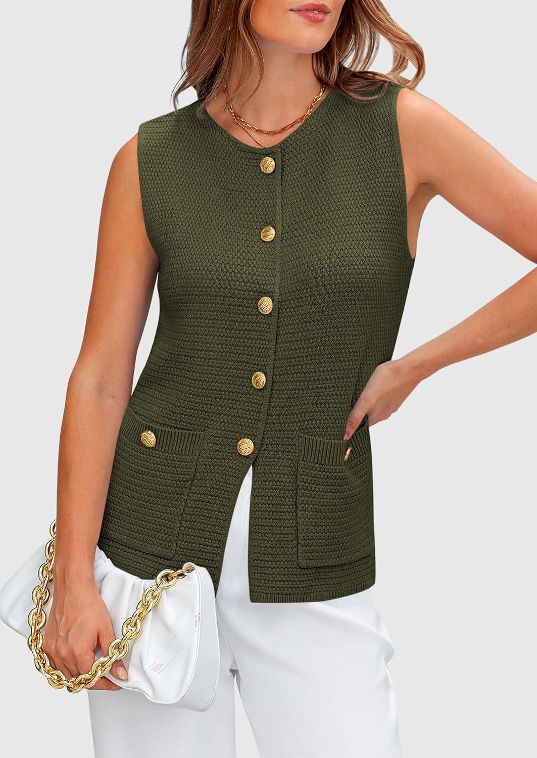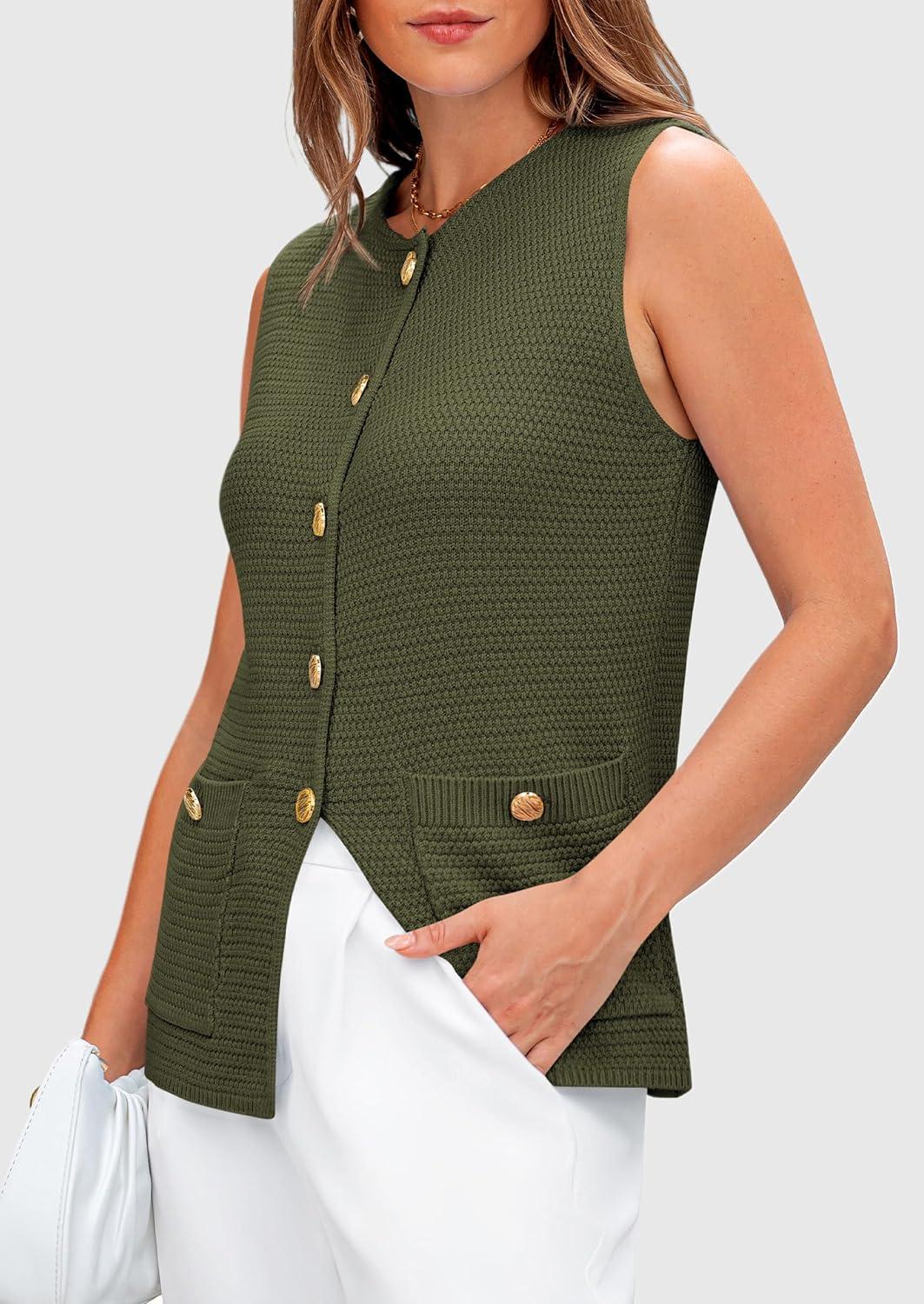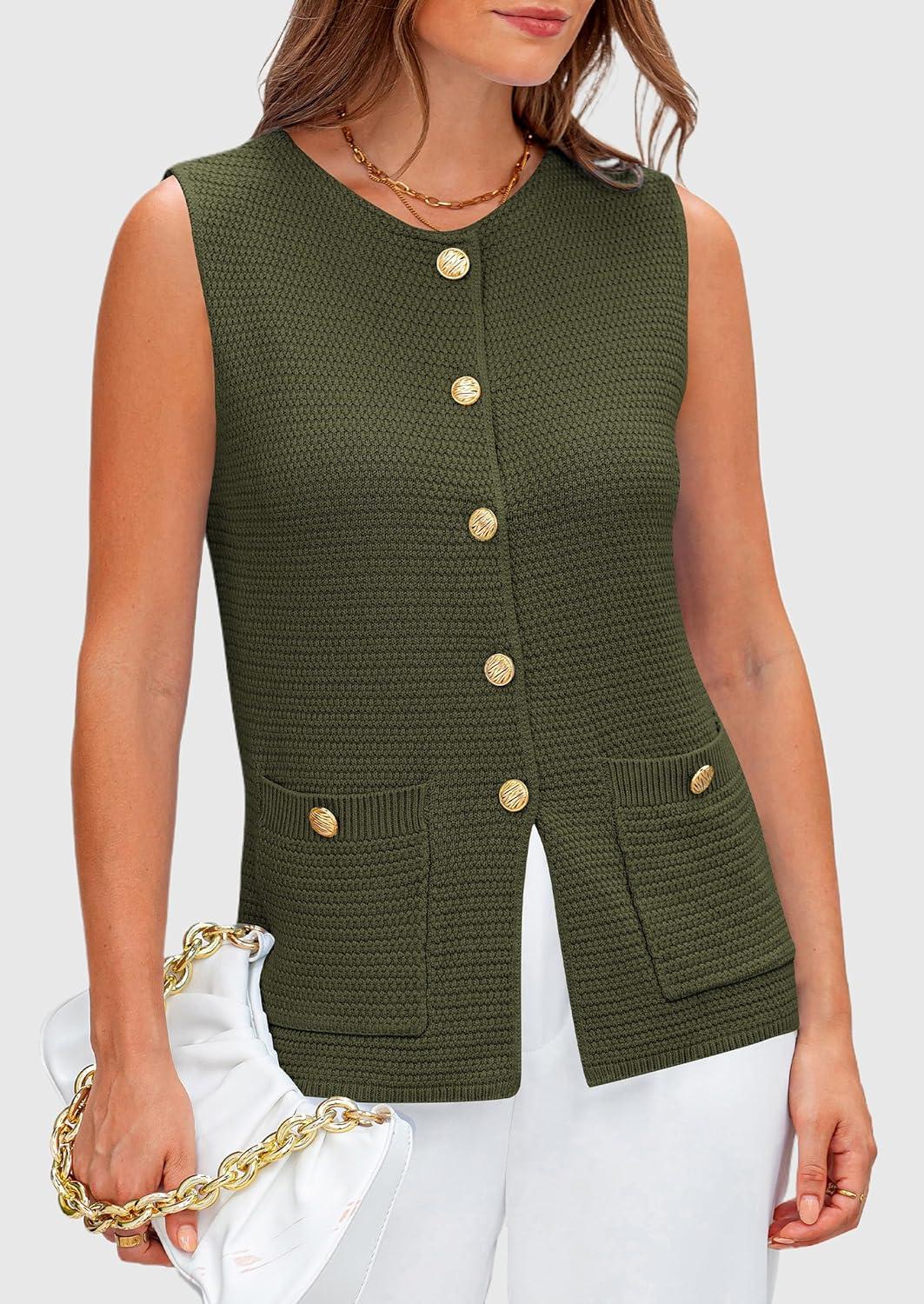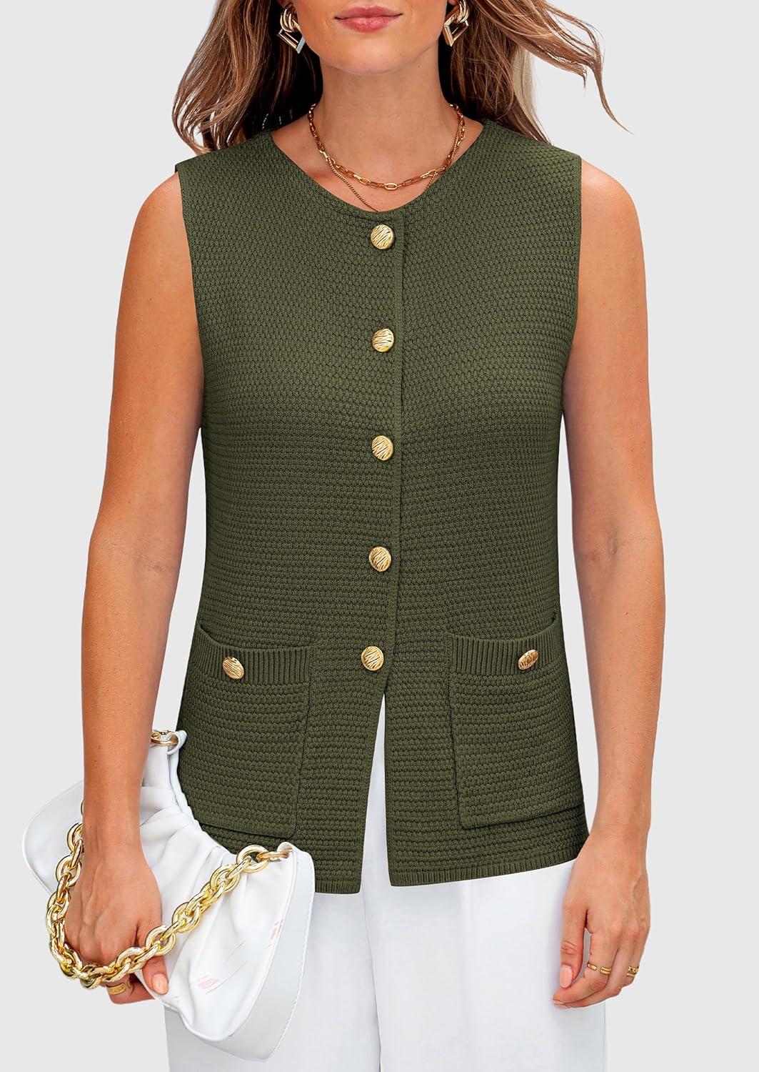 PRETTYGARDEN Women's 2025 Summer Sweater Vest Sleeveless Knit Cardigan Button Down Tank Tops Trendy Business Casual Outfits(Green)