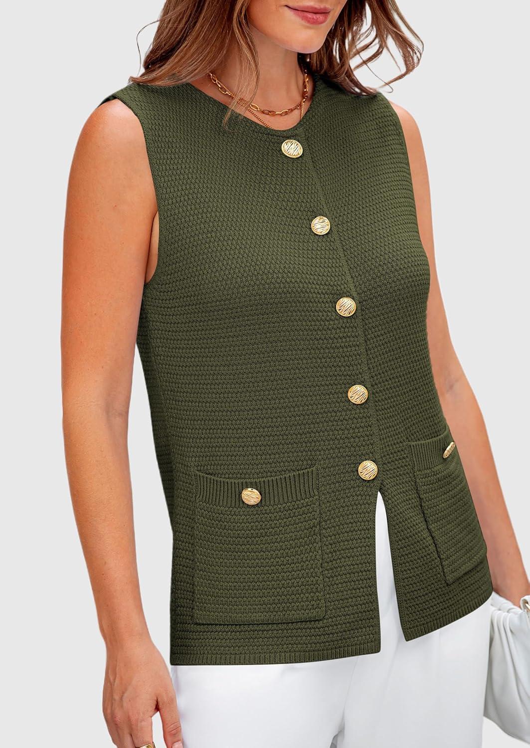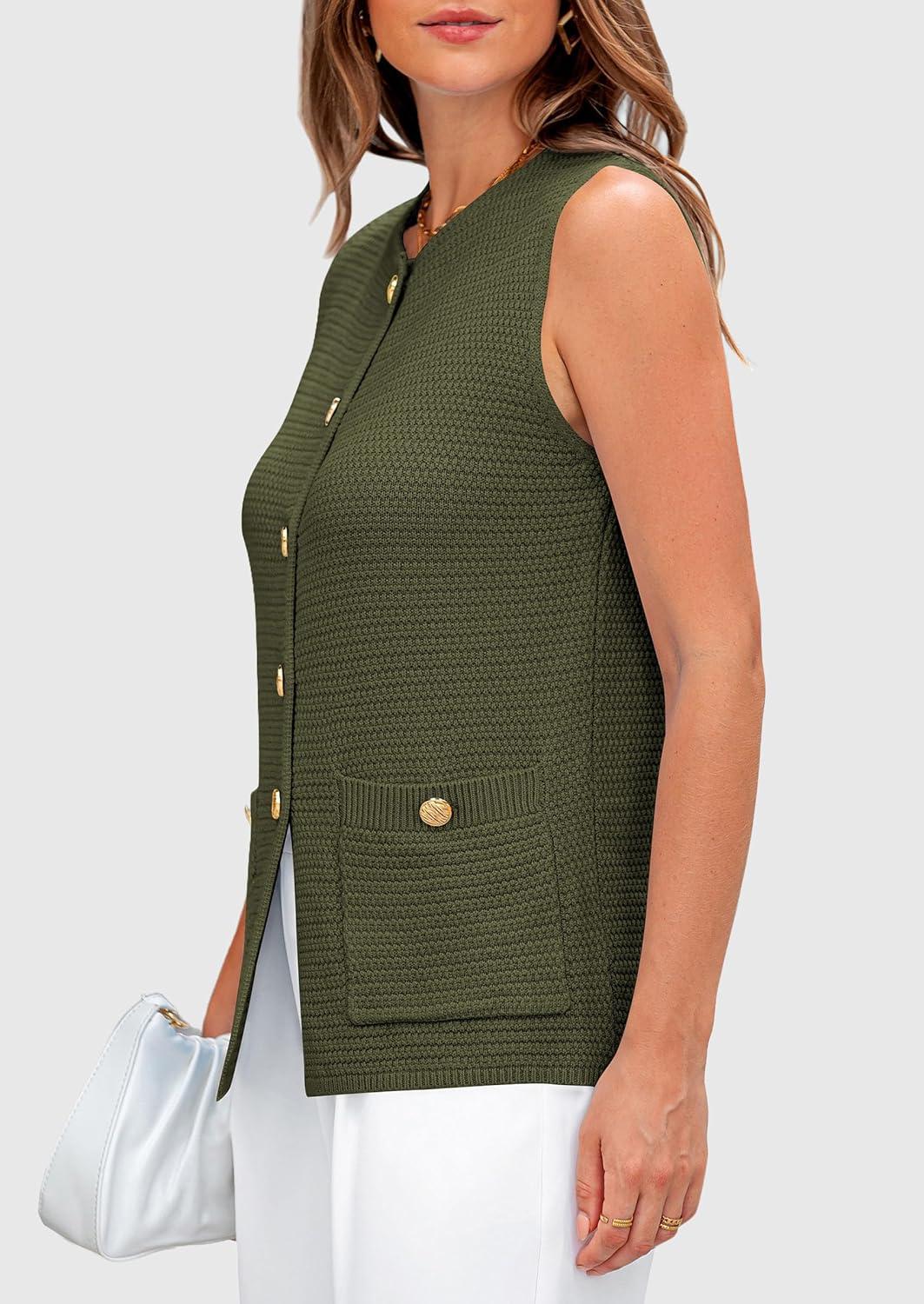 imagePRETTYGARDEN Womens 2025 Summer Sweater Vest Sleeveless Knit Cardigan Button Down Tank Tops Trendy Business Casual OutfitsGreen