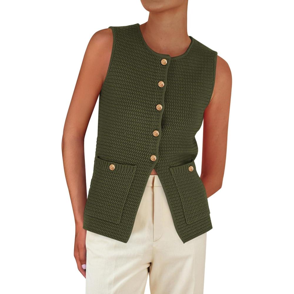imagePRETTYGARDEN Womens 2025 Summer Sweater Vest Sleeveless Knit Cardigan Button Down Tank Tops Trendy Business Casual OutfitsKhaki