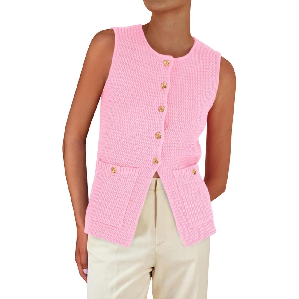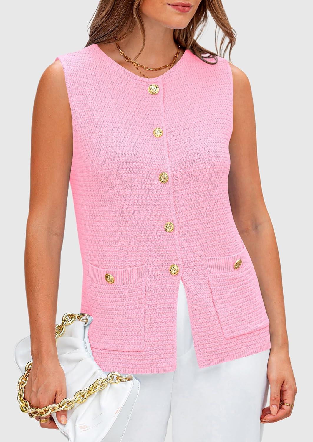 imagePRETTYGARDEN Womens 2025 Summer Sweater Vest Sleeveless Knit Cardigan Button Down Tank Tops Trendy Business Casual OutfitsLight Pink