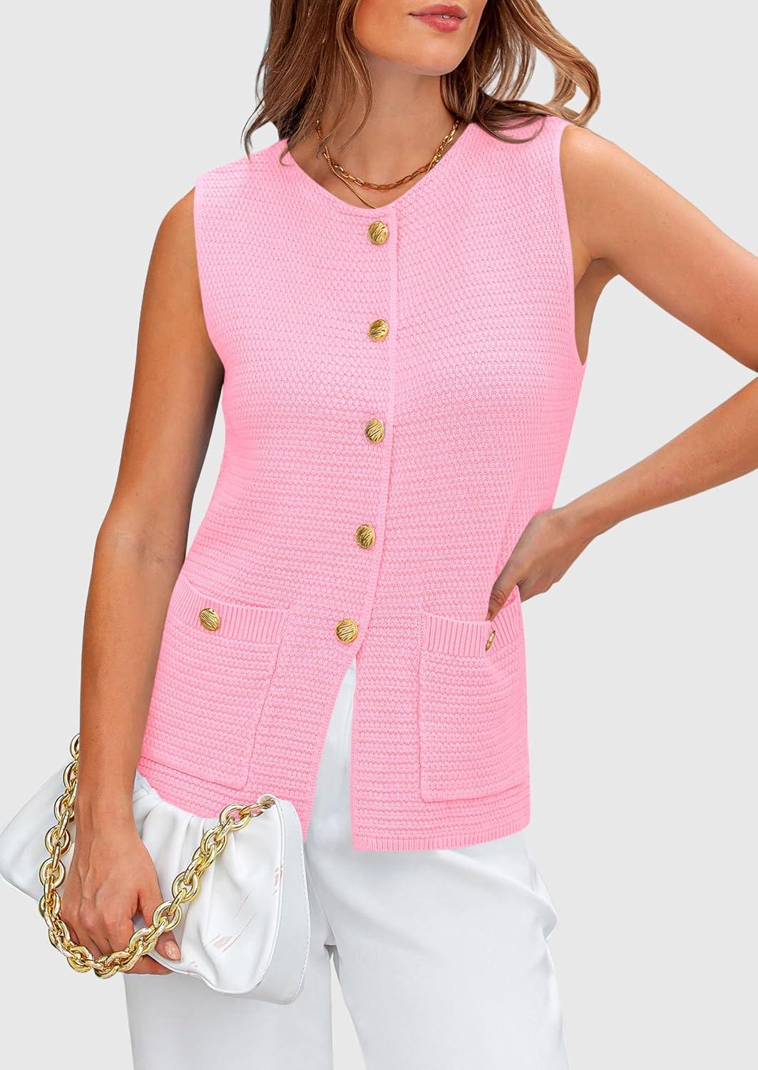 PRETTYGARDEN Women's 2025 Summer Sweater Vest Sleeveless Knit Cardigan Button Down Tank Tops Trendy Business Casual Outfits(Light Pink)