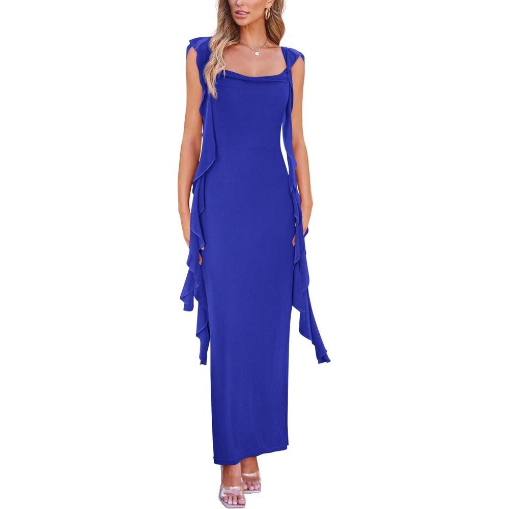 PRETTYGARDEN Women's 2025 Summer Wedding Guest Dress Sleeveless Ruffle Formal Cocktail Party Maxi Bodycon Dresses(Royal Blue)