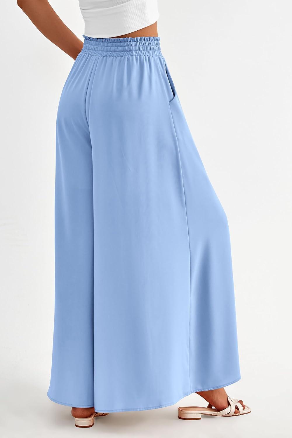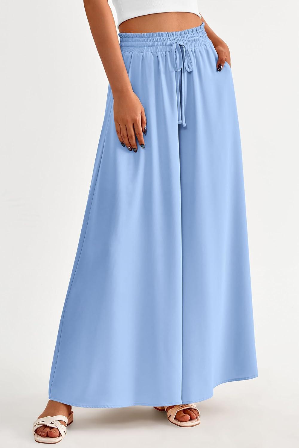 PRETTYGARDEN Women’s 2025 Summer Wide Leg Palazzo Pants High Waisted Flowy Pockets Trendy Casual Lounge Boho Beach Trousers(Blue)