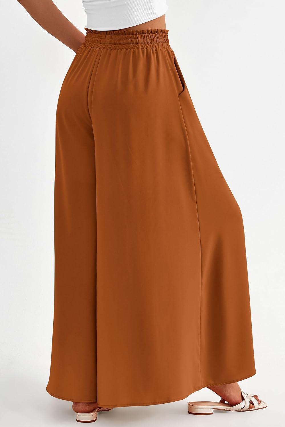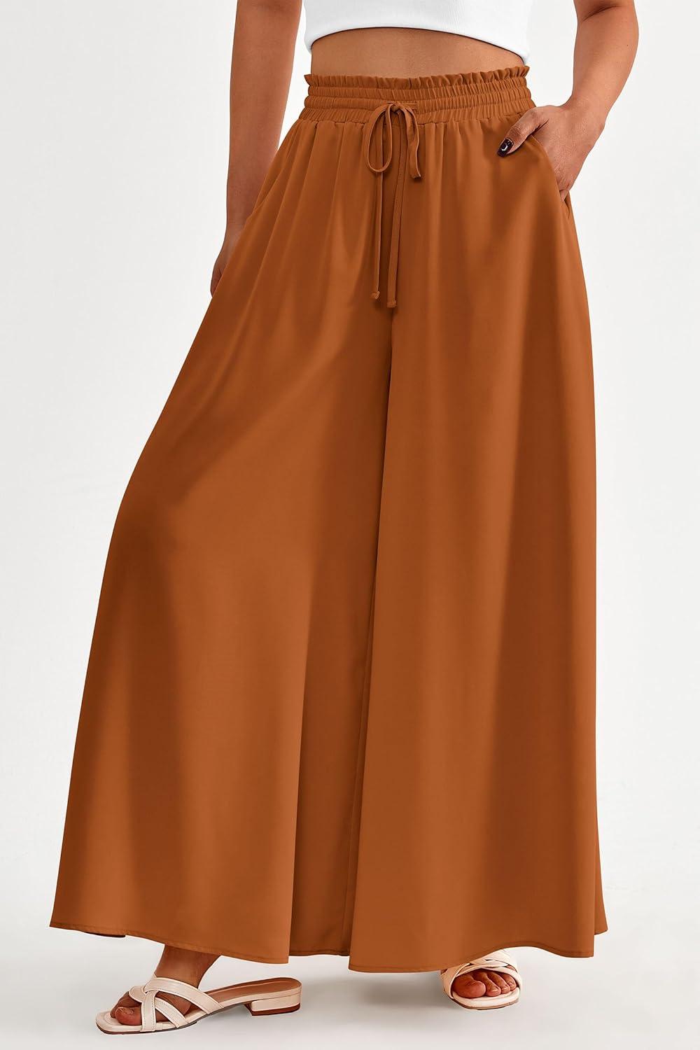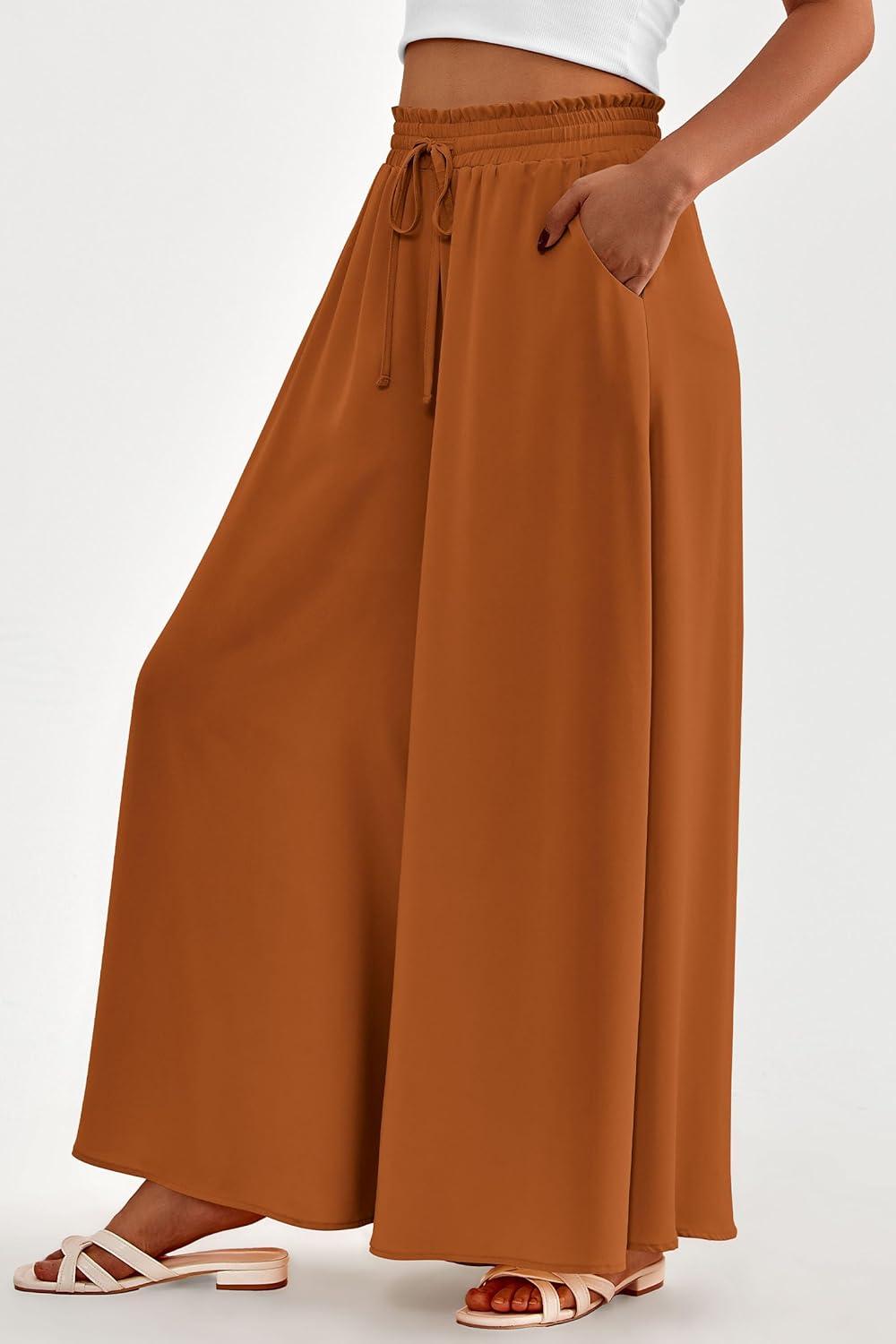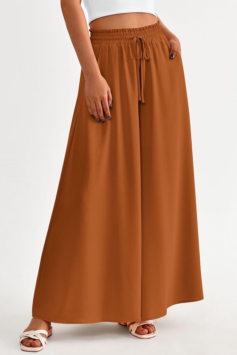 PRETTYGARDEN Women's 2025 Summer Wide Leg Palazzo Pants High Waisted Flowy Pockets Trendy Casual Lounge Boho Beach Trousers(Brown)