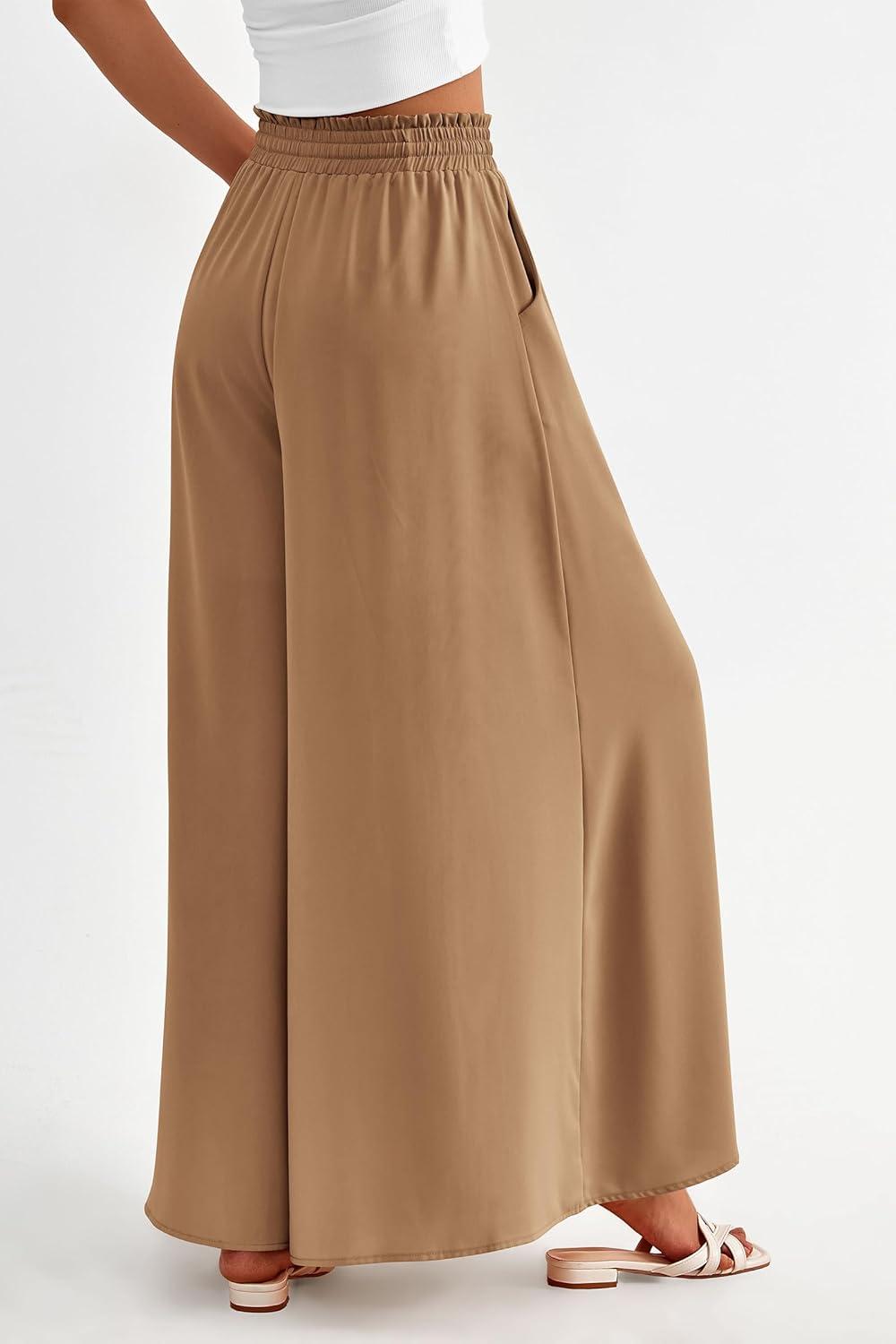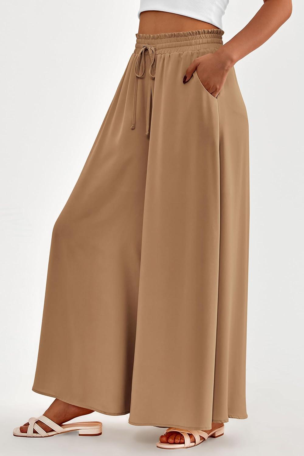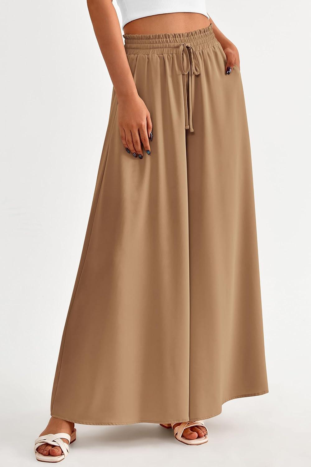 PRETTYGARDEN Women's 2025 Summer Wide Leg Palazzo Pants High Waisted Flowy Pockets Trendy Casual Lounge Boho Beach Trousers(Khaki)