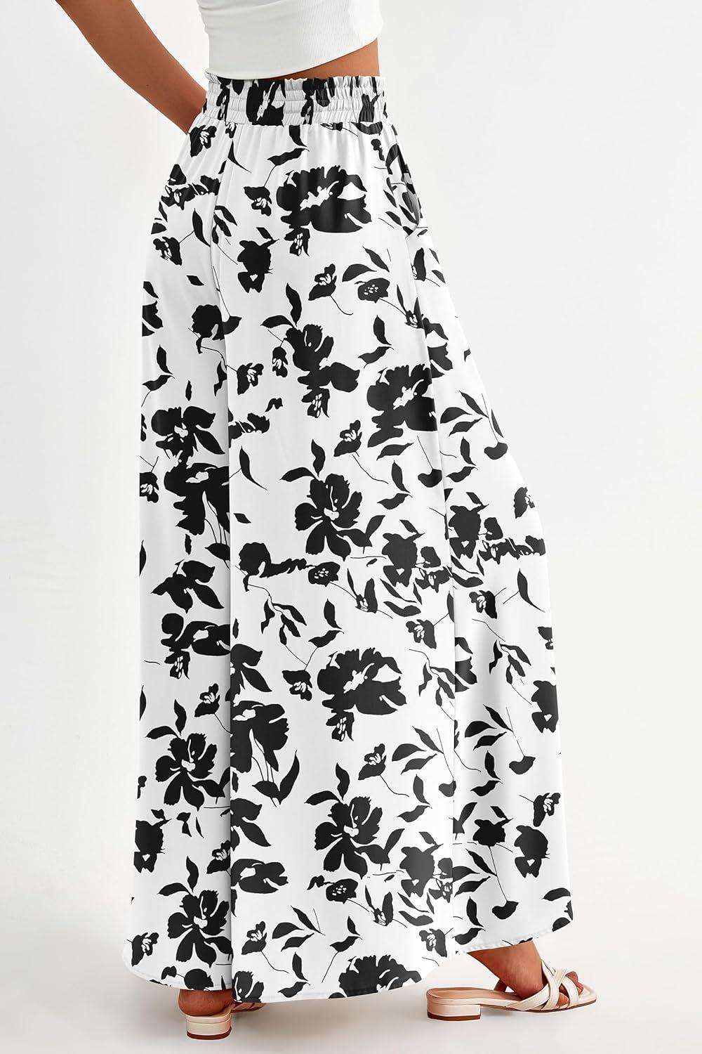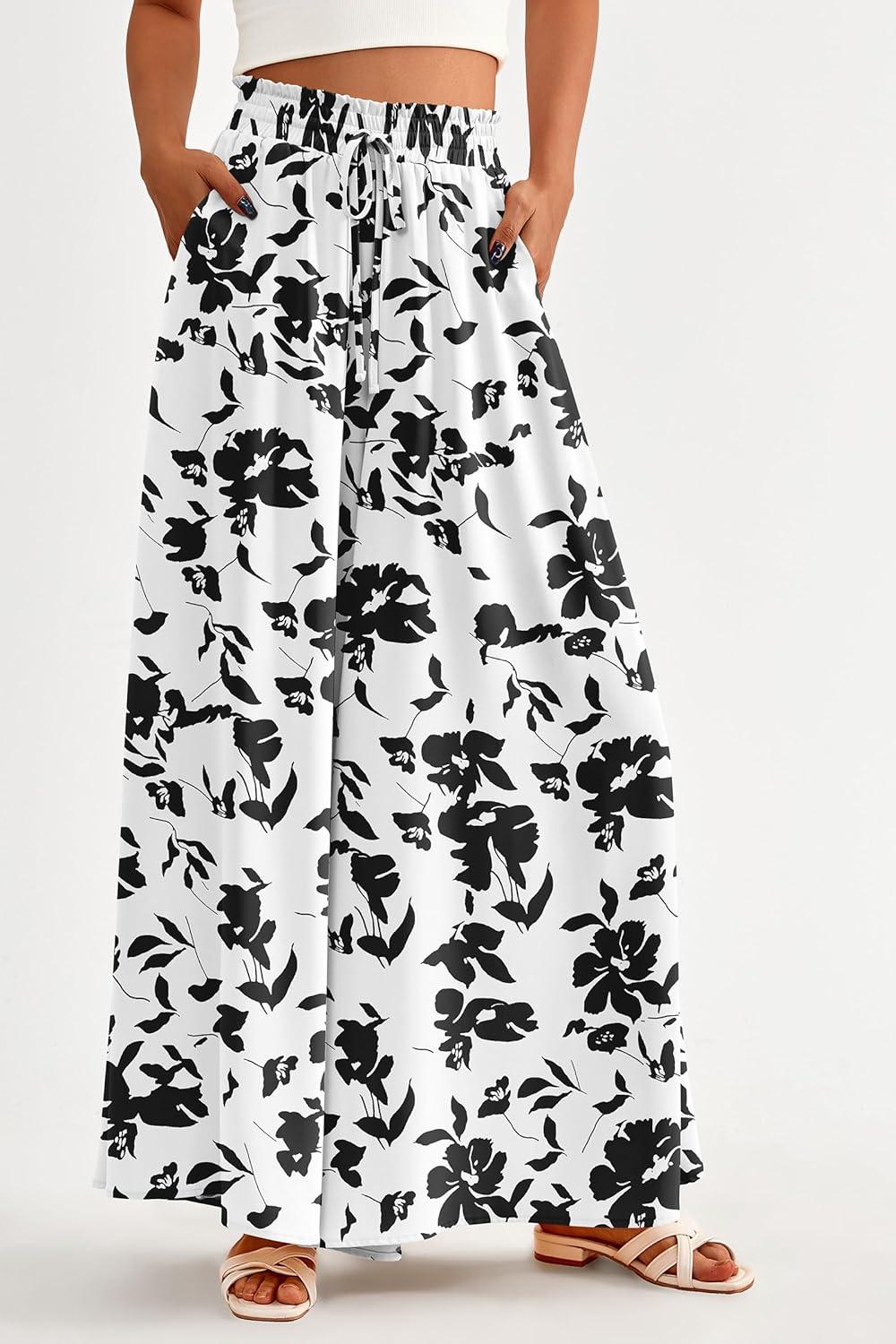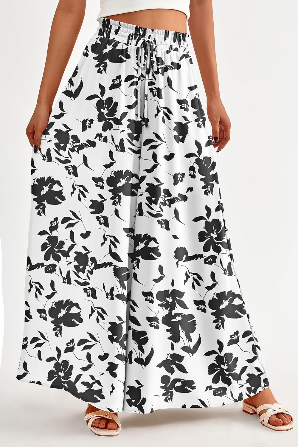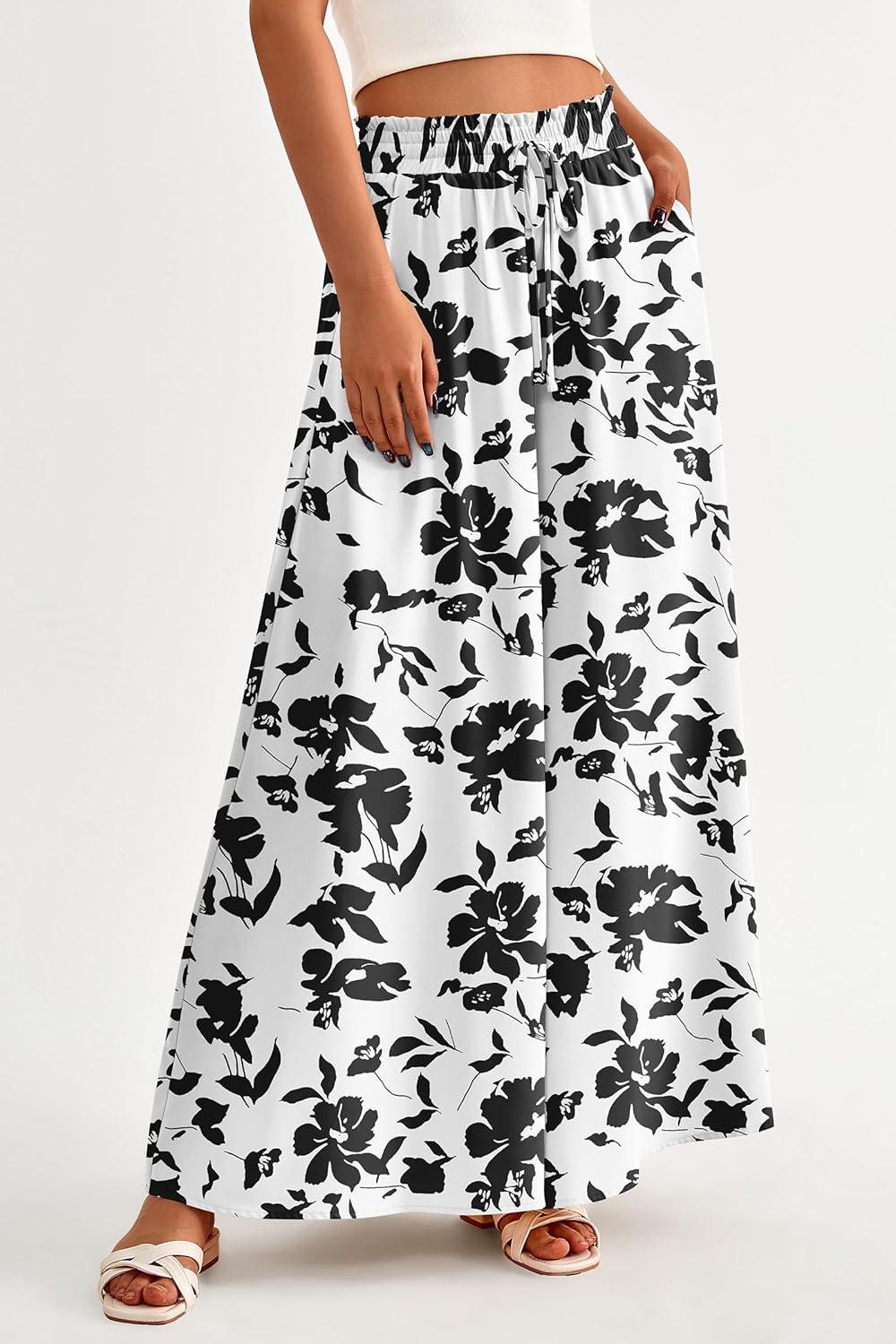 PRETTYGARDEN Women’s 2025 Summer Wide Leg Palazzo Pants High Waisted Flowy Pockets Trendy Casual Lounge Boho Beach Trousers(Print Black)