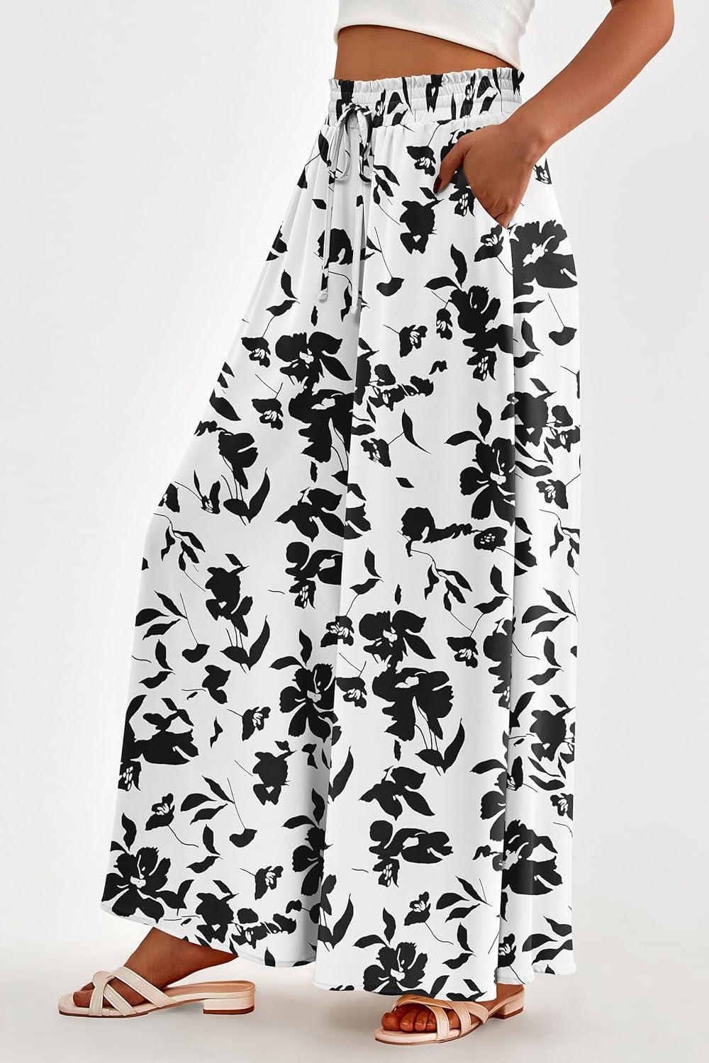 PRETTYGARDEN Women's 2025 Summer Wide Leg Palazzo Pants High Waisted Flowy Pockets Trendy Casual Lounge Boho Beach Trousers(Print Black)