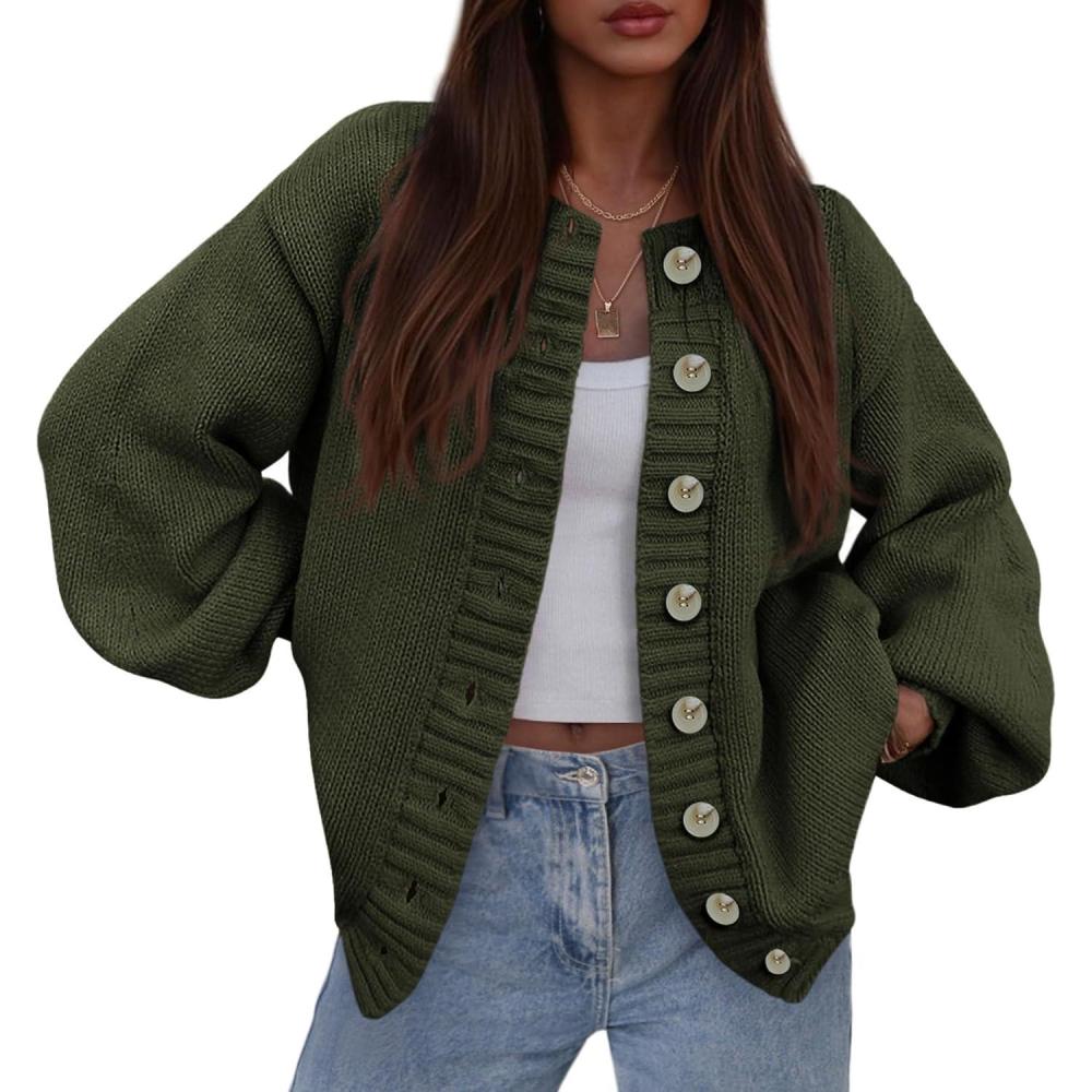 PRETTYGARDEN Women's 2025 Winter Cardigan Sweaters Trendy Chunky Knit Long Sleeve Button Up Casual Warm Fall Jackets Coats(Army Green)
