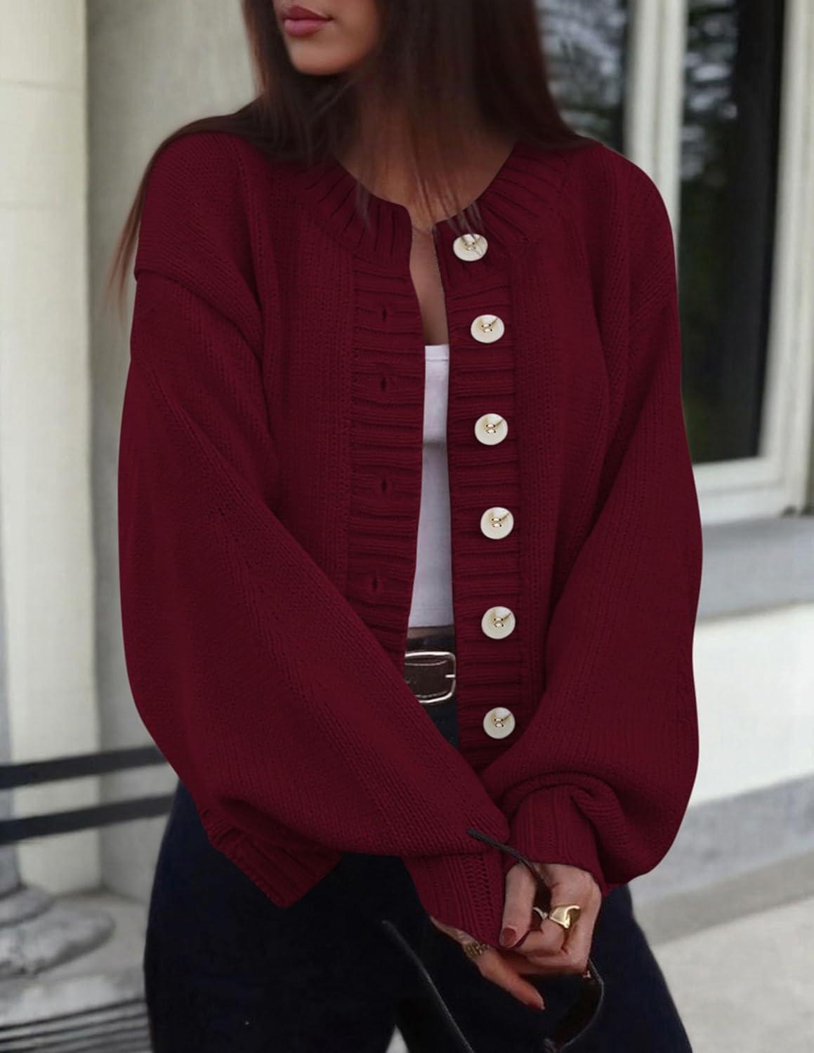 PRETTYGARDEN Women's 2025 Winter Cardigan Sweaters Trendy Chunky Knit Long Sleeve Button Up Casual Warm Fall Jackets Coats(Burgundy)