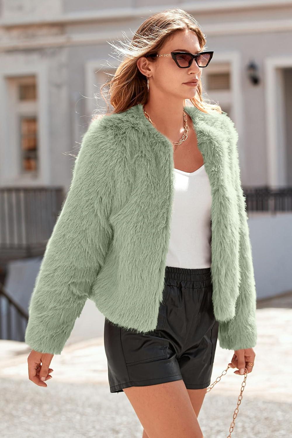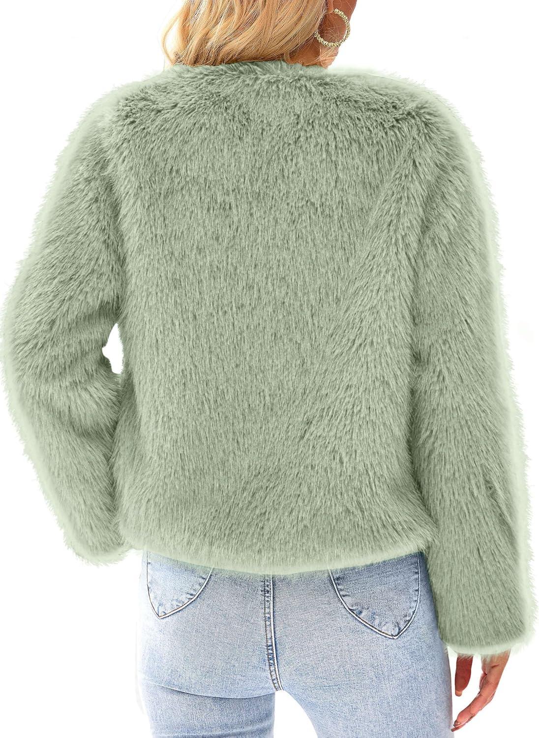 PRETTYGARDEN Women’s 2025 Winter Coats Fleece Cropped Jacket Faux Fur Long Sleeve Pockets Shaggy Warm Outerwear Fall Clothes(Bean Green)
