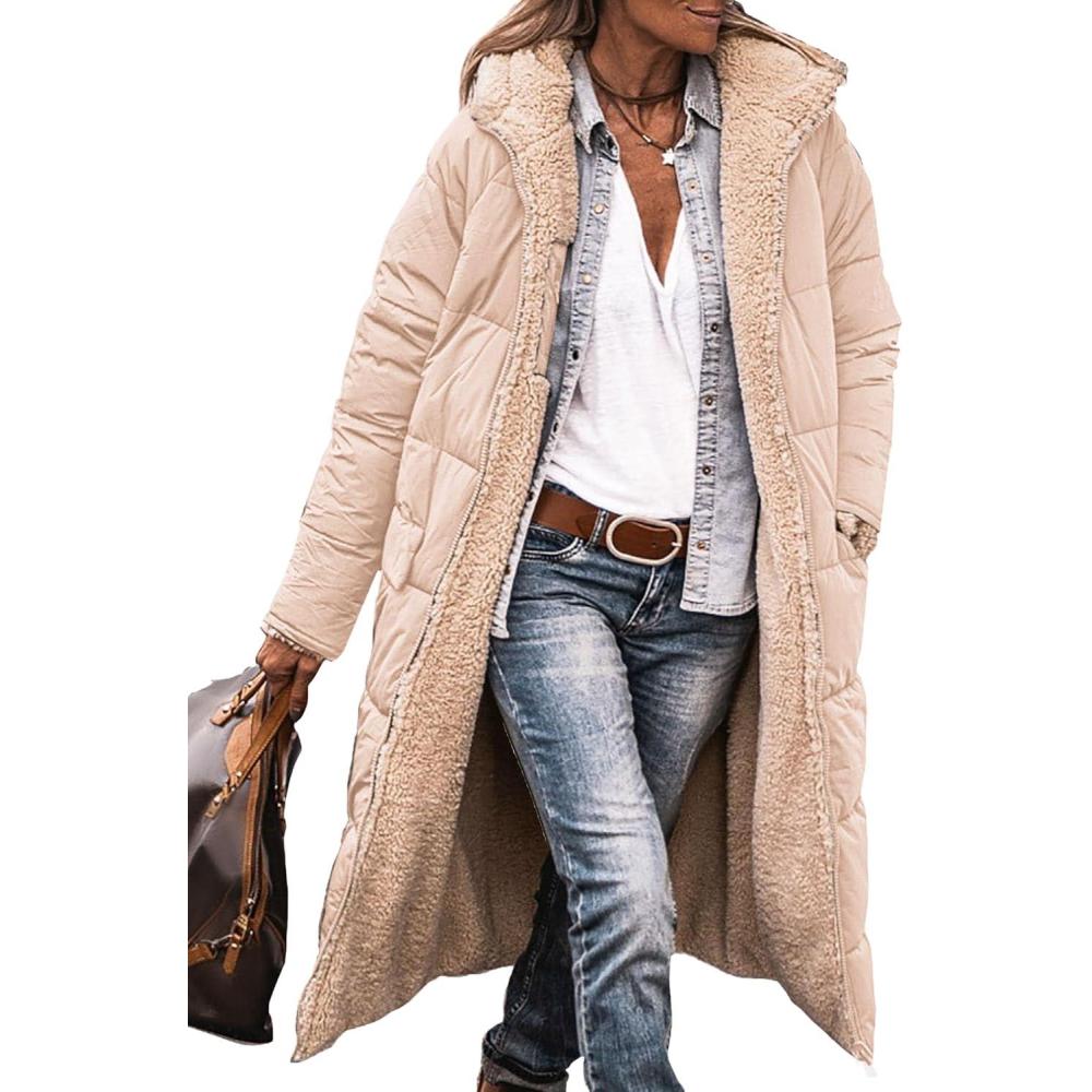 PRETTYGARDEN Women’s 2025 Winter Fashion Clothes Oversized Shearling Fleece Long Coats Jackets(Beige)