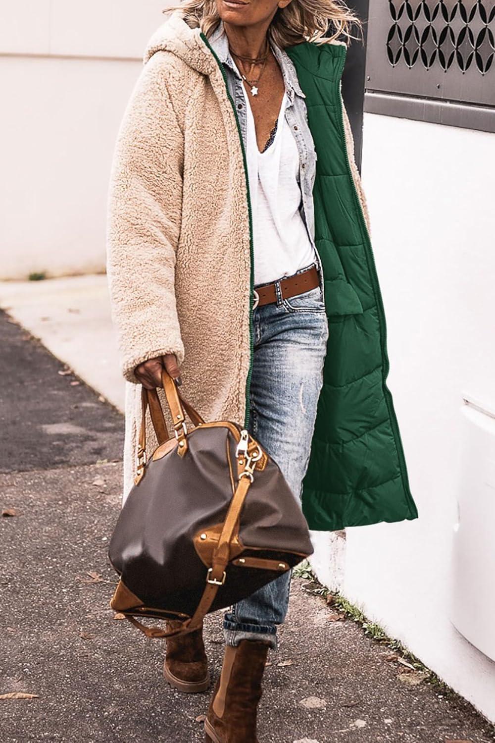 PRETTYGARDEN Women's 2025 Winter Fashion Clothes Oversized Shearling Fleece Long Coats Jackets(Dark Green)