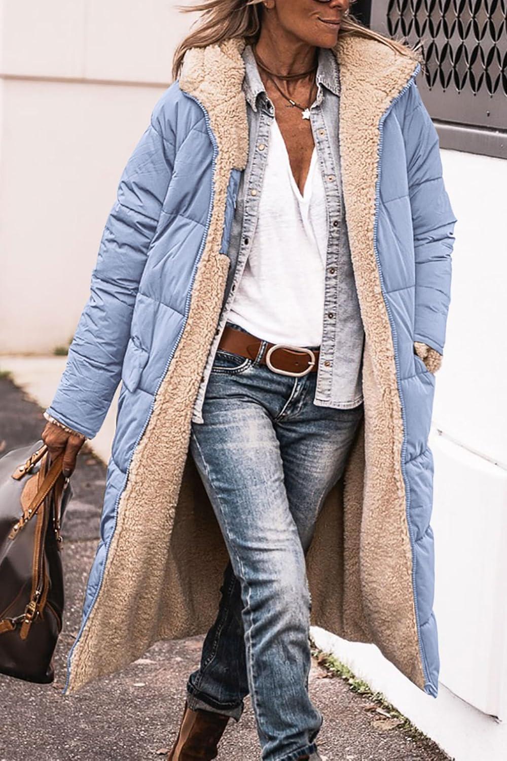 PRETTYGARDEN Women's 2025 Winter Fashion Clothes Oversized Shearling Fleece Long Coats Jackets(Light Blue)