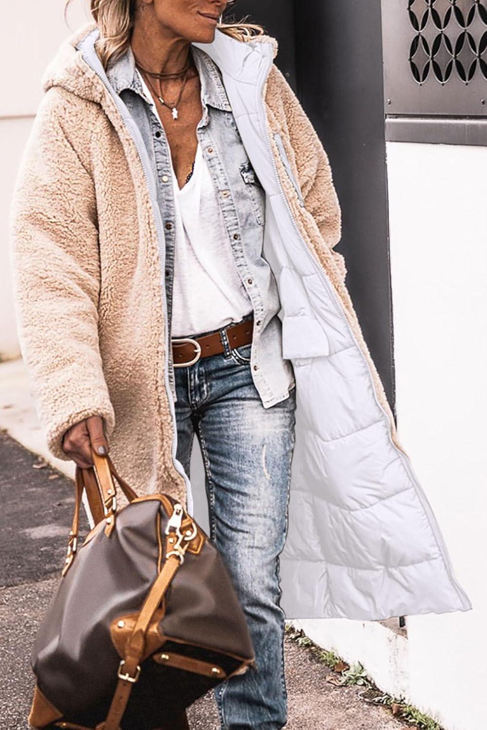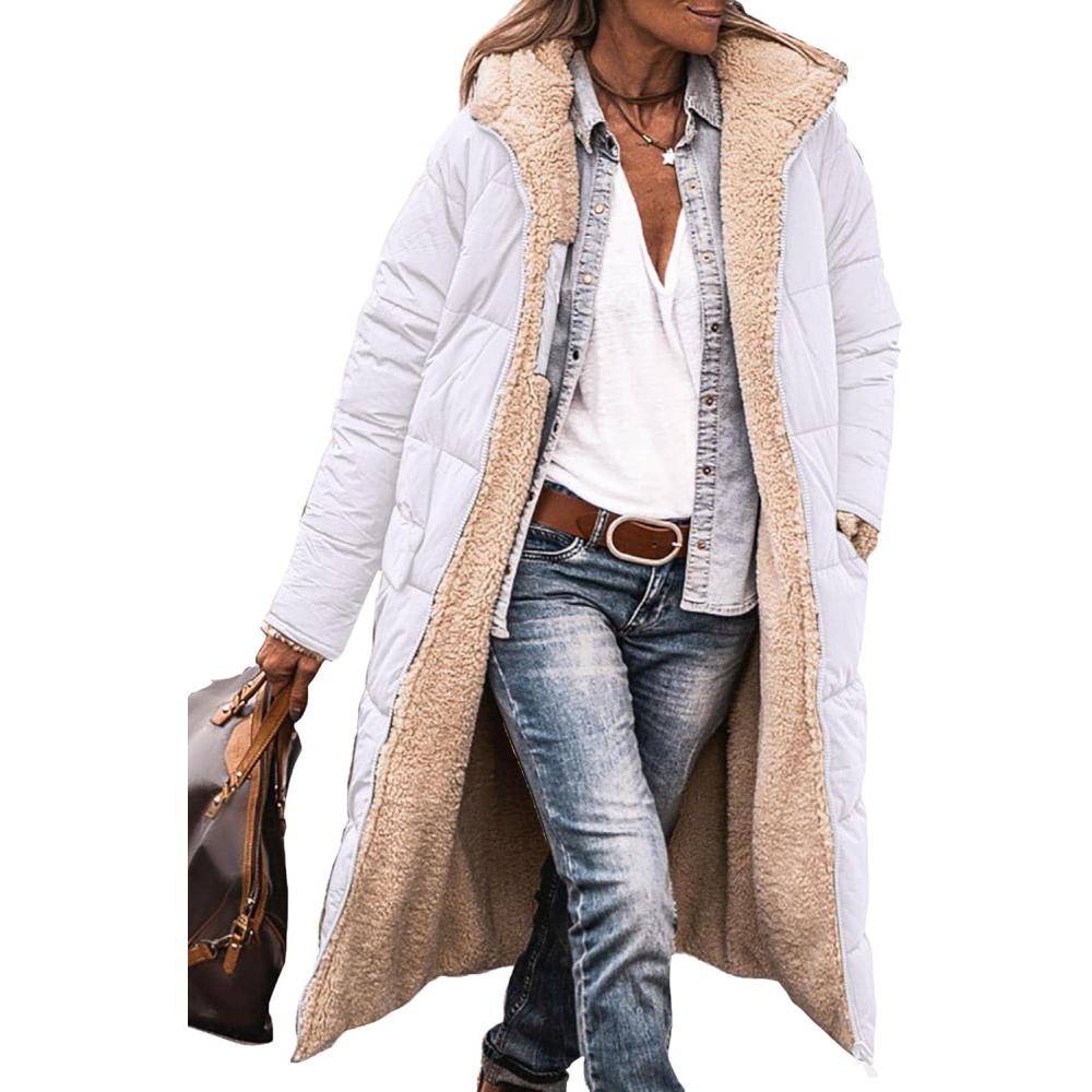 PRETTYGARDEN Women's 2025 Winter Fashion Clothes Oversized Shearling Fleece Long Coats Jackets(White)