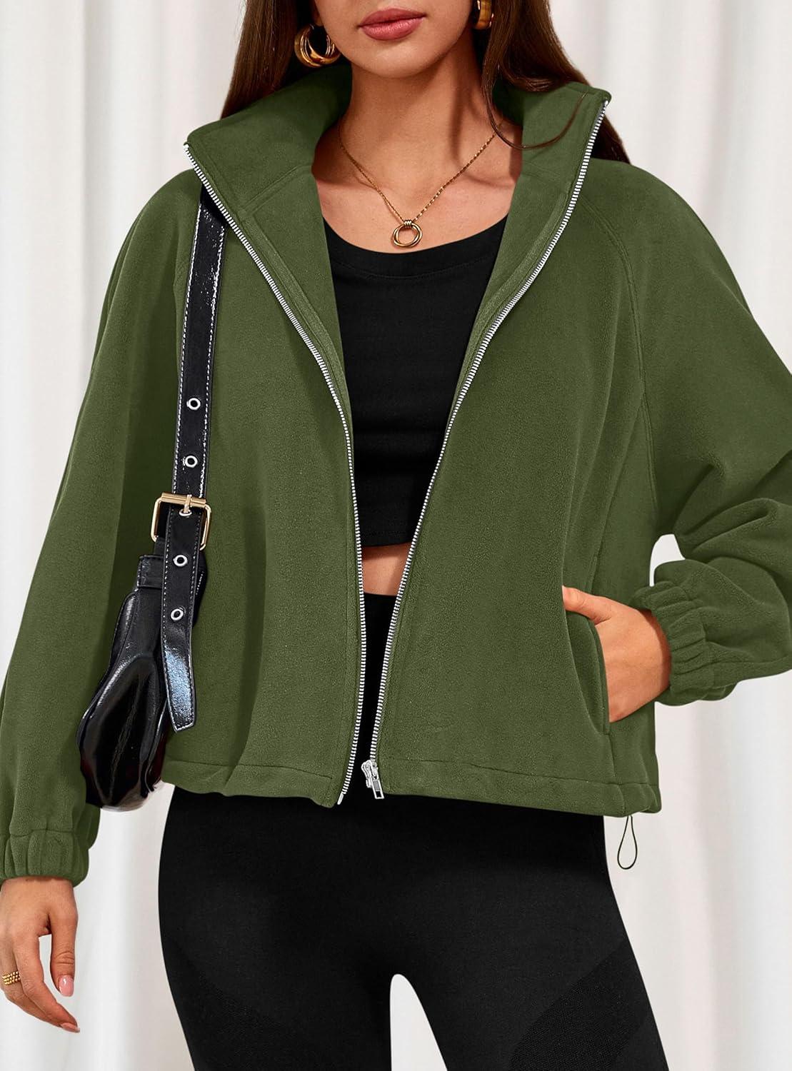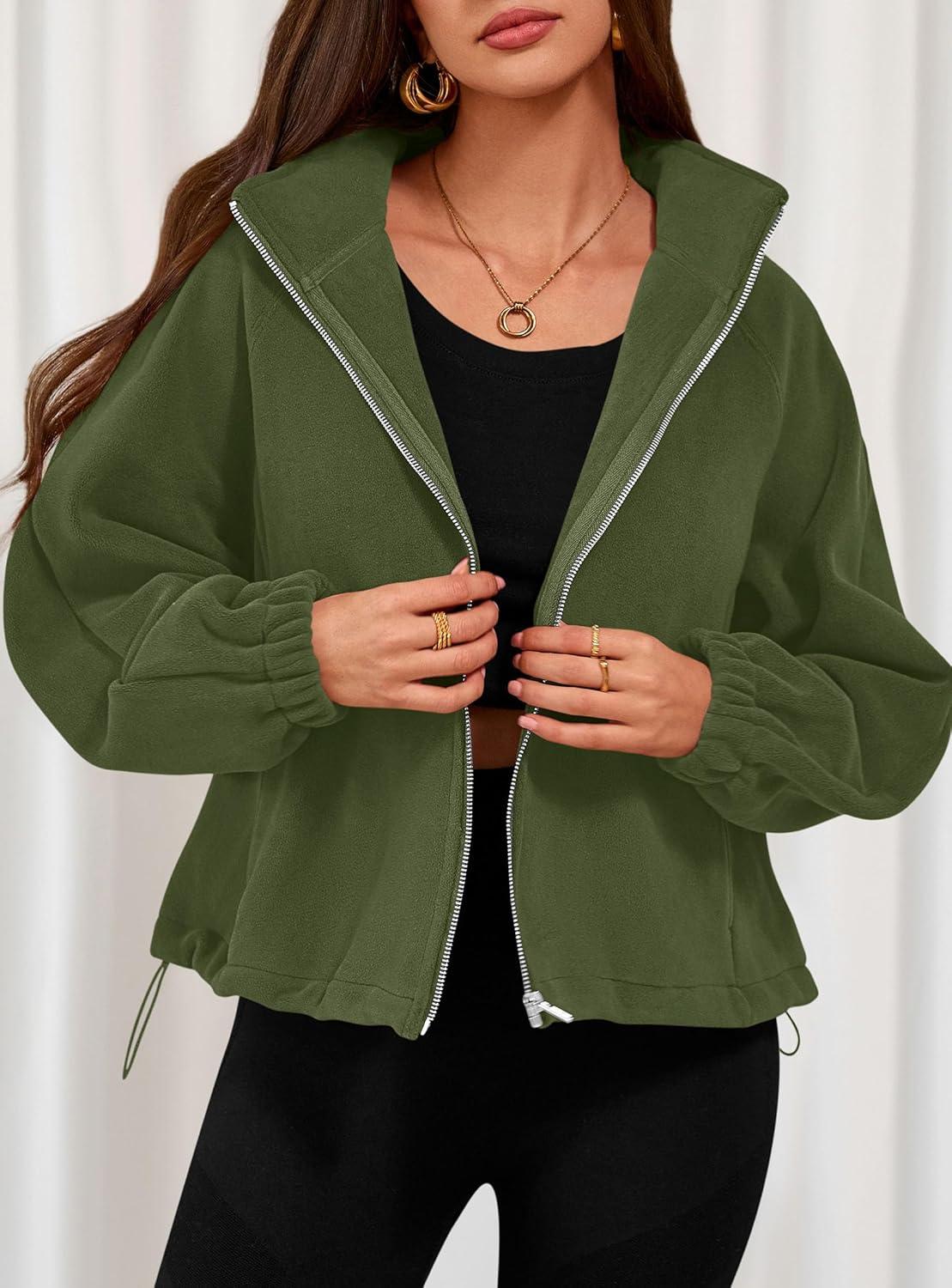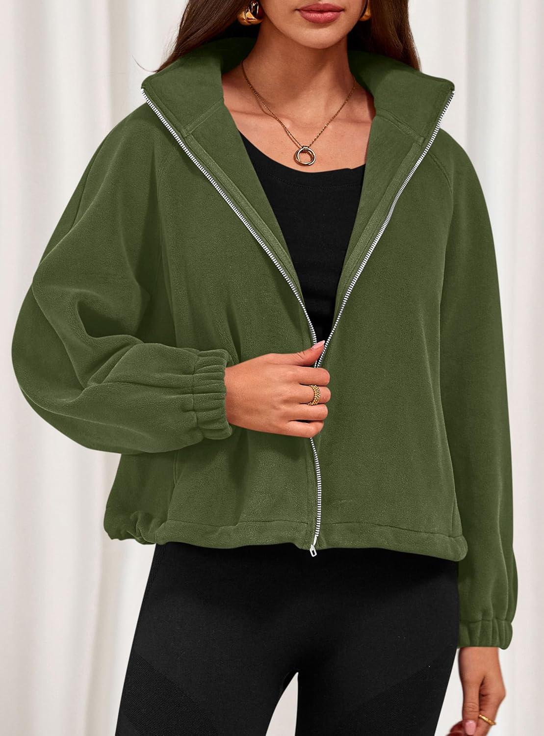 PRETTYGARDEN Womens 2025 Winter Fleece Sherpa Jacket Trendy Long Sleeve Zip Up Cropped Warm Coat Fall Fashion Workout Clothes(Army Green)