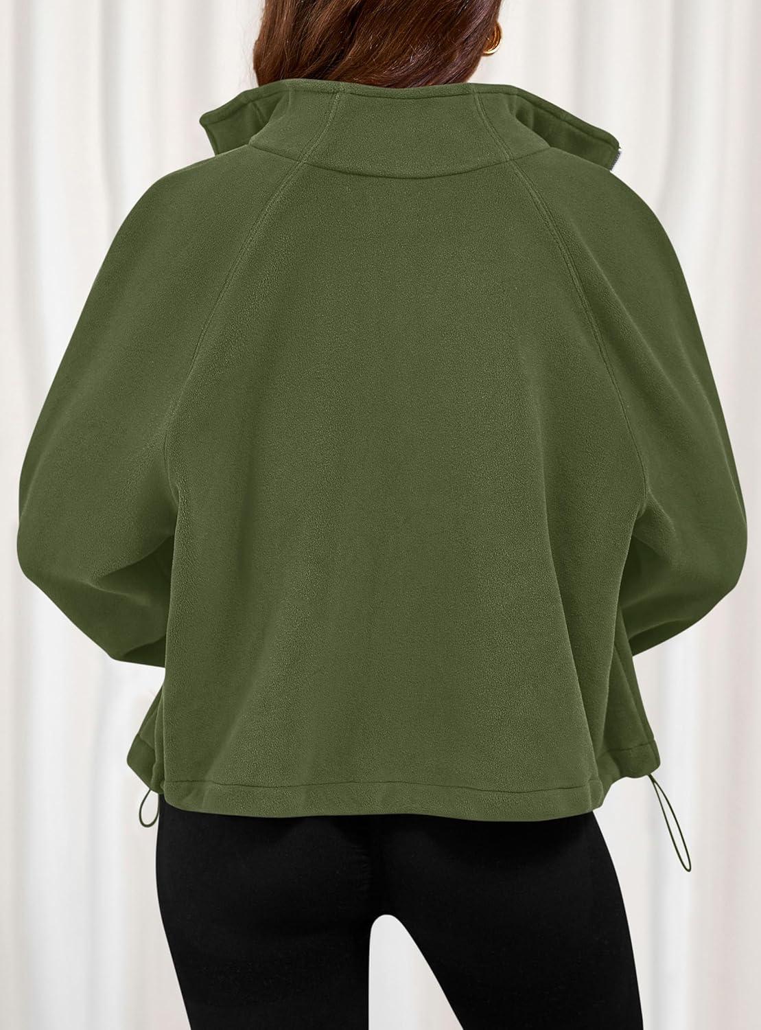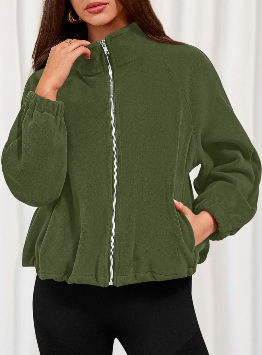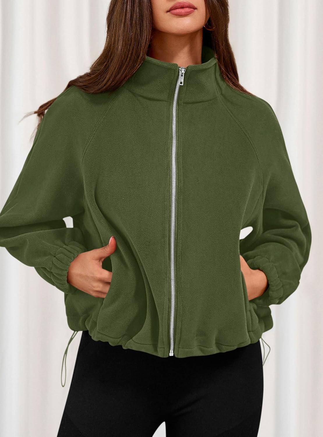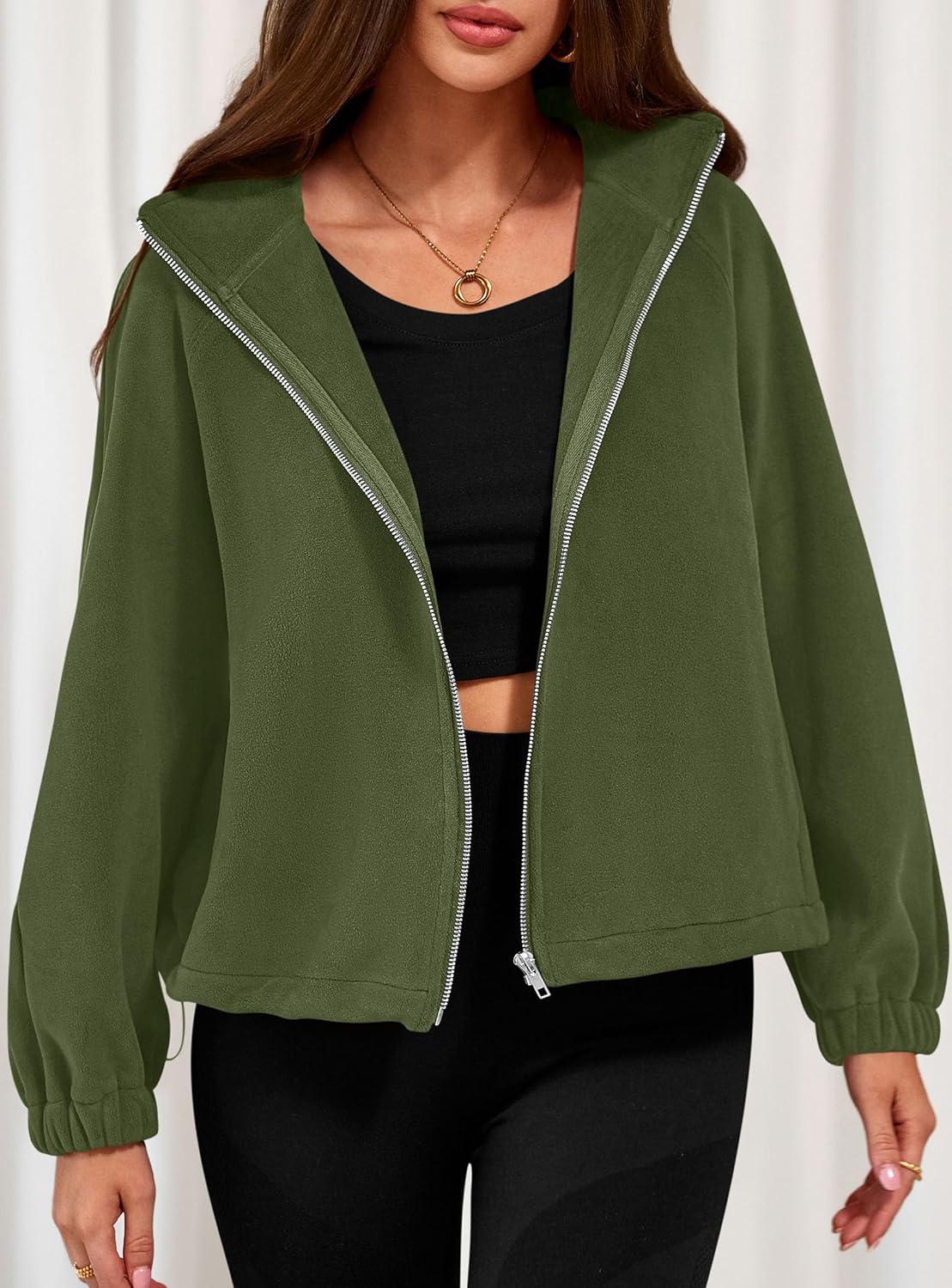 PRETTYGARDEN Womens 2025 Winter Fleece Sherpa Jacket Trendy Long Sleeve Zip Up Cropped Warm Coat Fall Fashion Workout Clothes(Army Green)