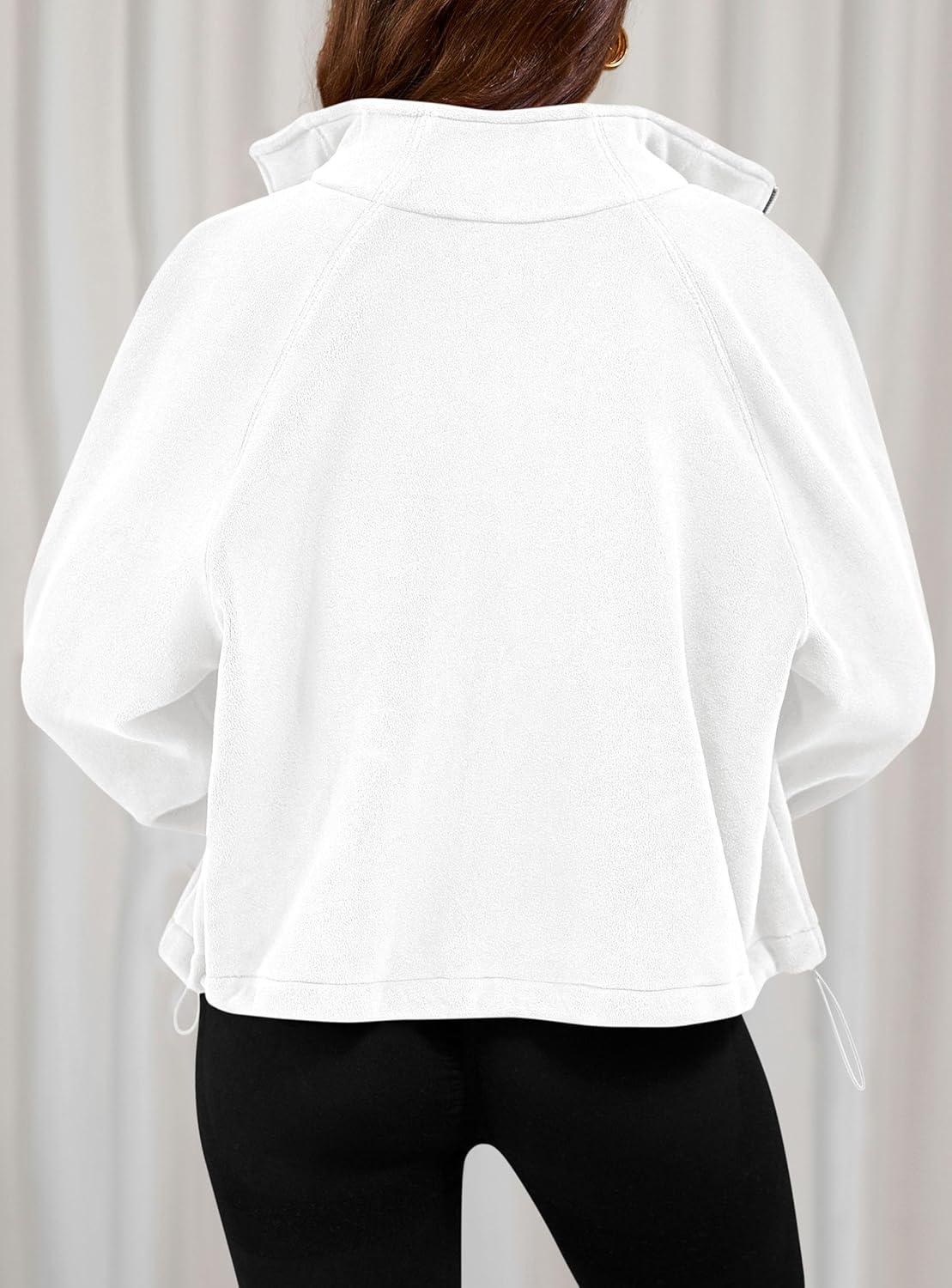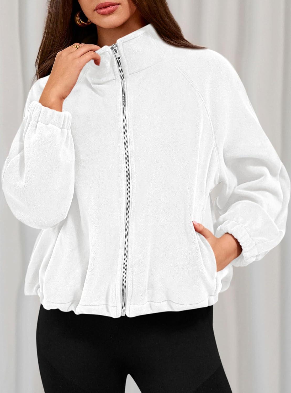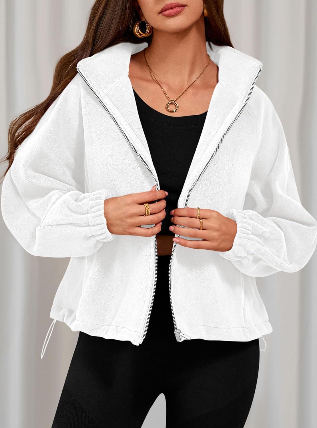 PRETTYGARDEN Womens 2025 Winter Fleece Sherpa Jacket Trendy Long Sleeve Zip Up Cropped Warm Coat Fall Fashion Workout Clothes(White)