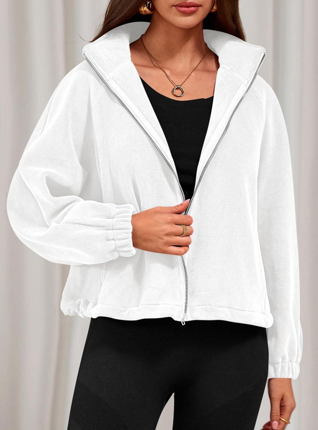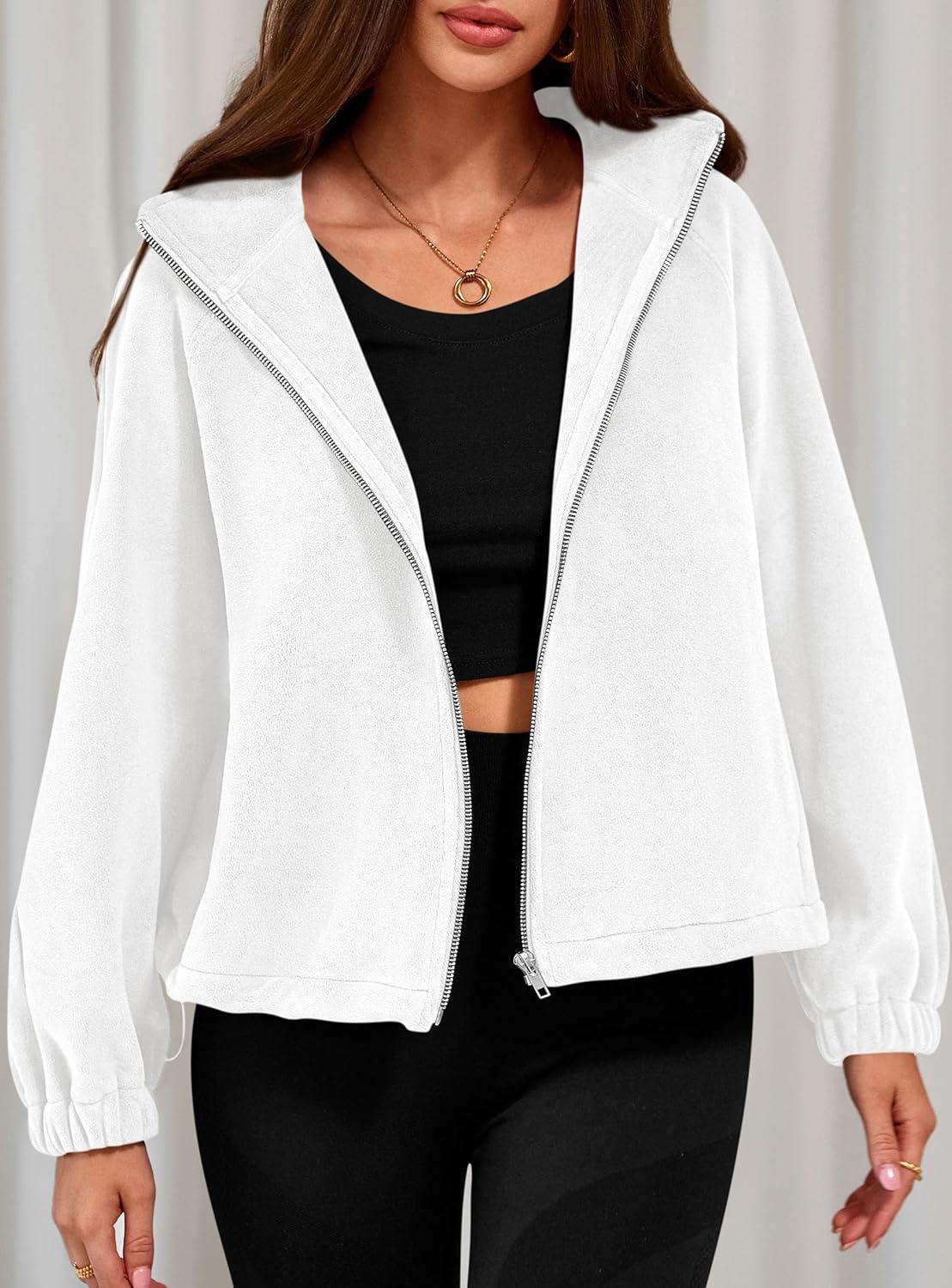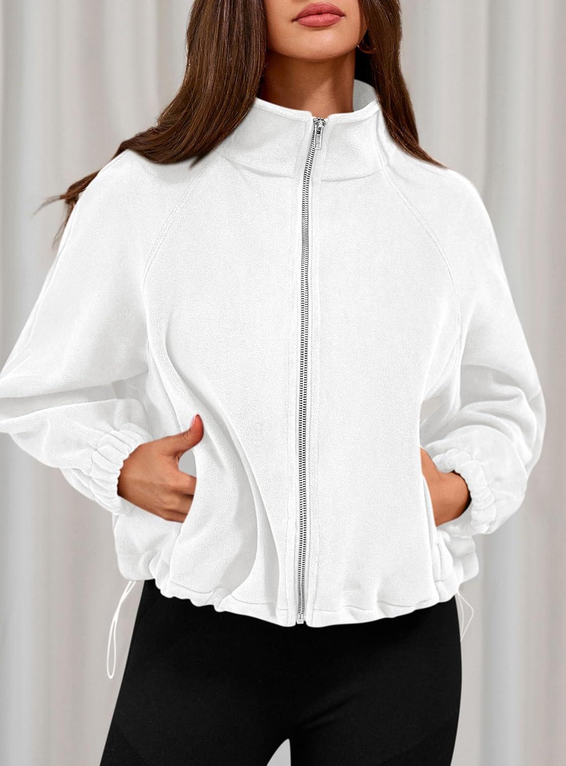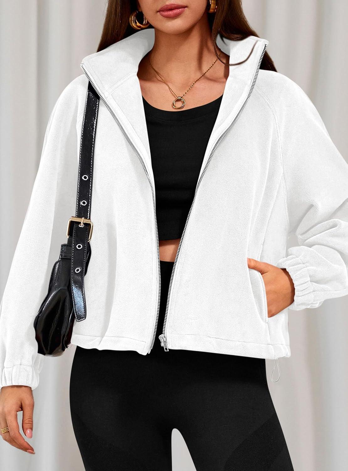 PRETTYGARDEN Womens 2025 Winter Fleece Sherpa Jacket Trendy Long Sleeve Zip Up Cropped Warm Coat Fall Fashion Workout Clothes(White)