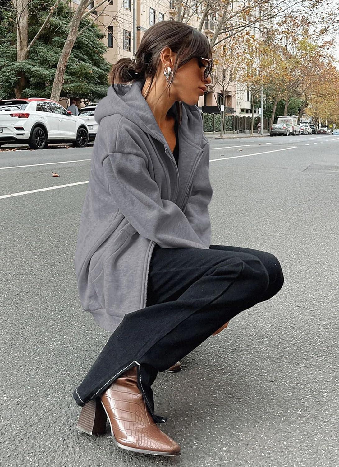 PRETTYGARDEN Women's 2025 Zip Up Y2K Hoodies Casual Long Sleeve Sweatshirts Fall Spring Track Jackets with Pockets(Dark Grey)