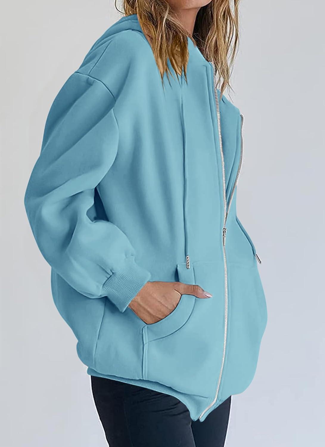 PRETTYGARDEN Women's 2025 Zip Up Y2K Hoodies Casual Long Sleeve Sweatshirts Fall Spring Track Jackets with Pockets(Lake Blue)