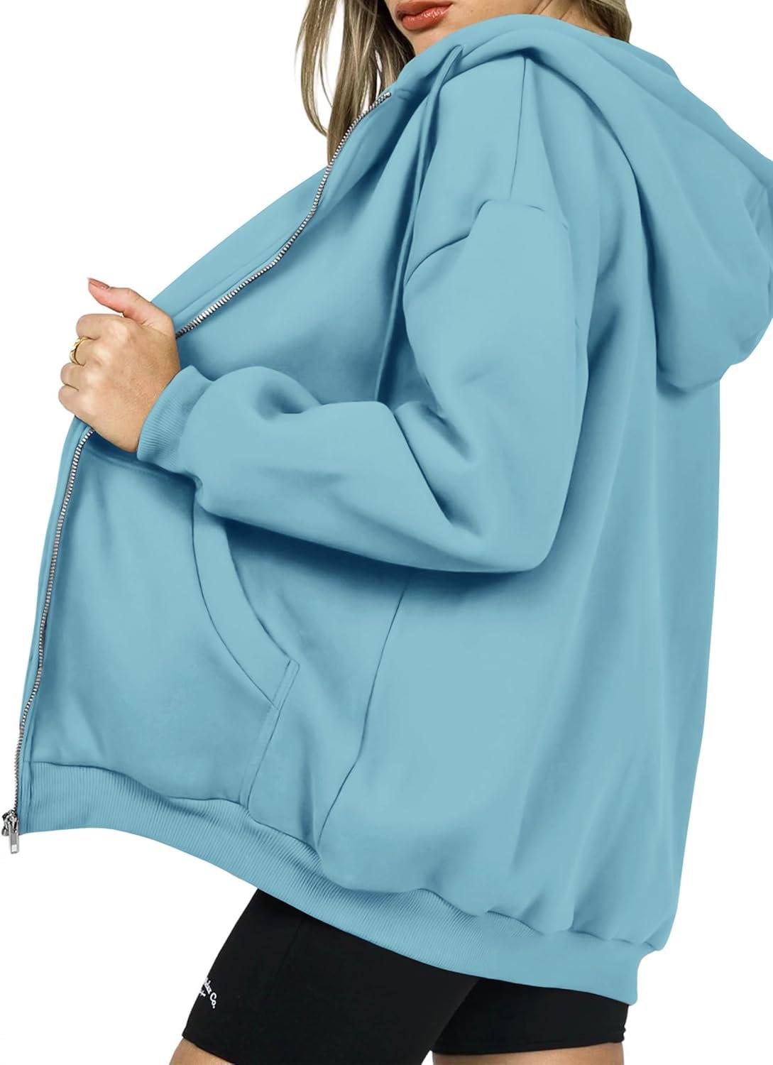 PRETTYGARDEN Women’s 2025 Zip Up Y2K Hoodies Casual Long Sleeve Sweatshirts Fall Spring Track Jackets with Pockets(Light Blue)
