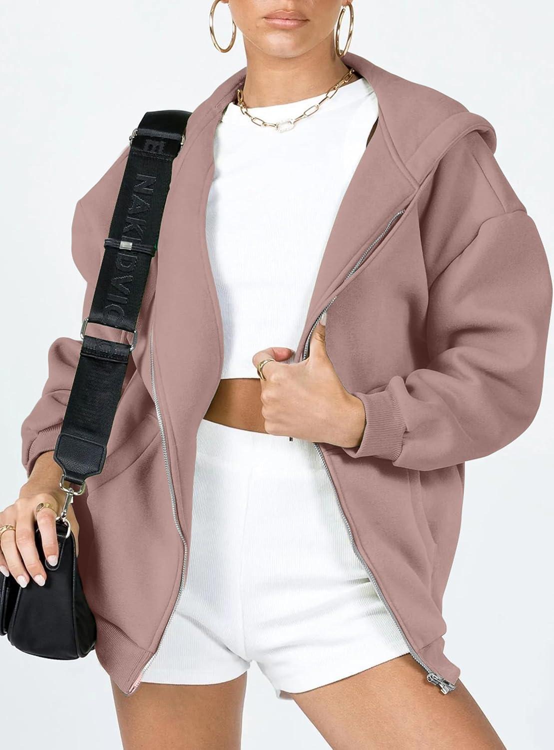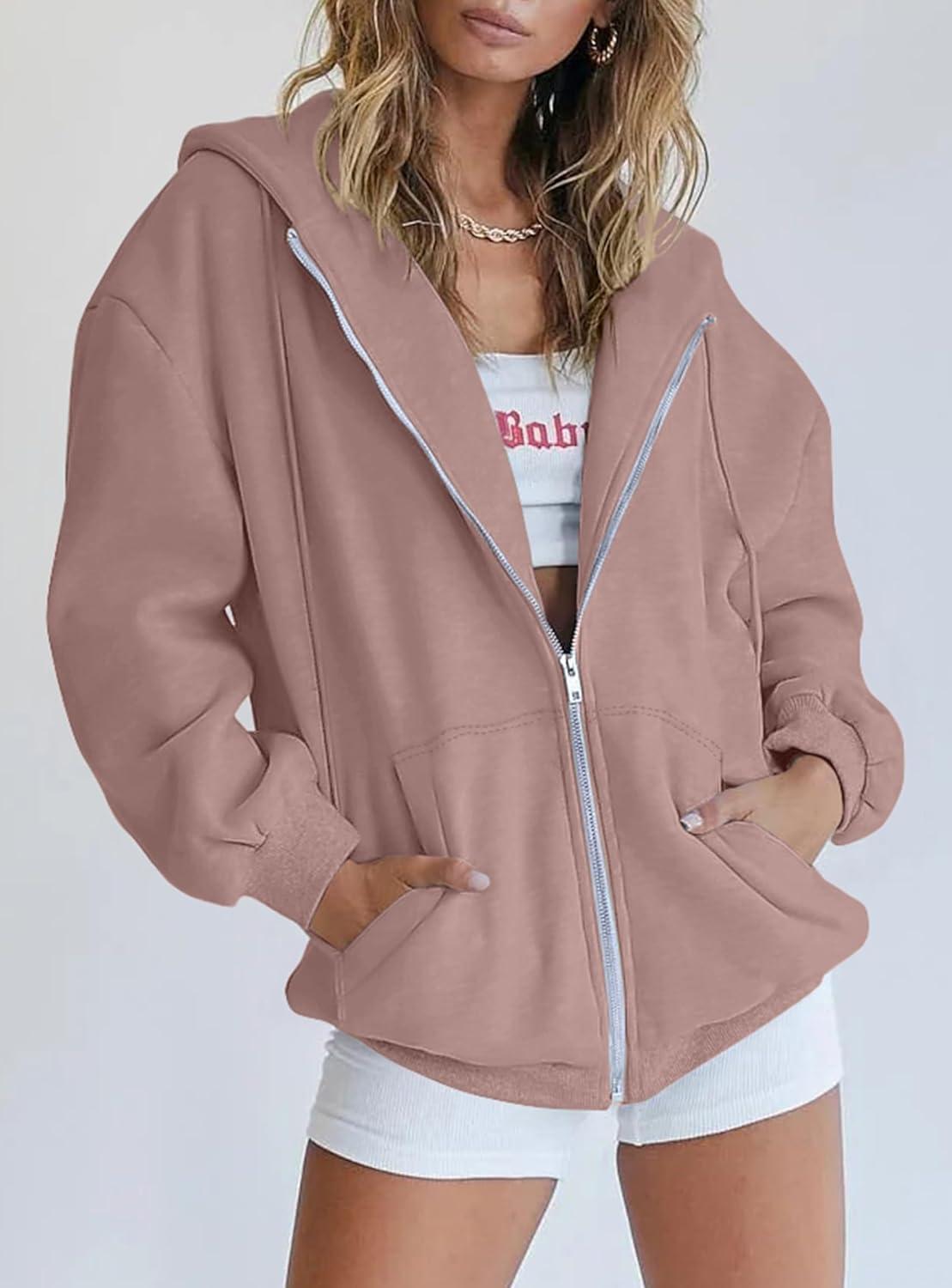 PRETTYGARDEN Women’s 2025 Zip Up Y2K Hoodies Casual Long Sleeve Sweatshirts Fall Spring Track Jackets with Pockets(Nutmeg)