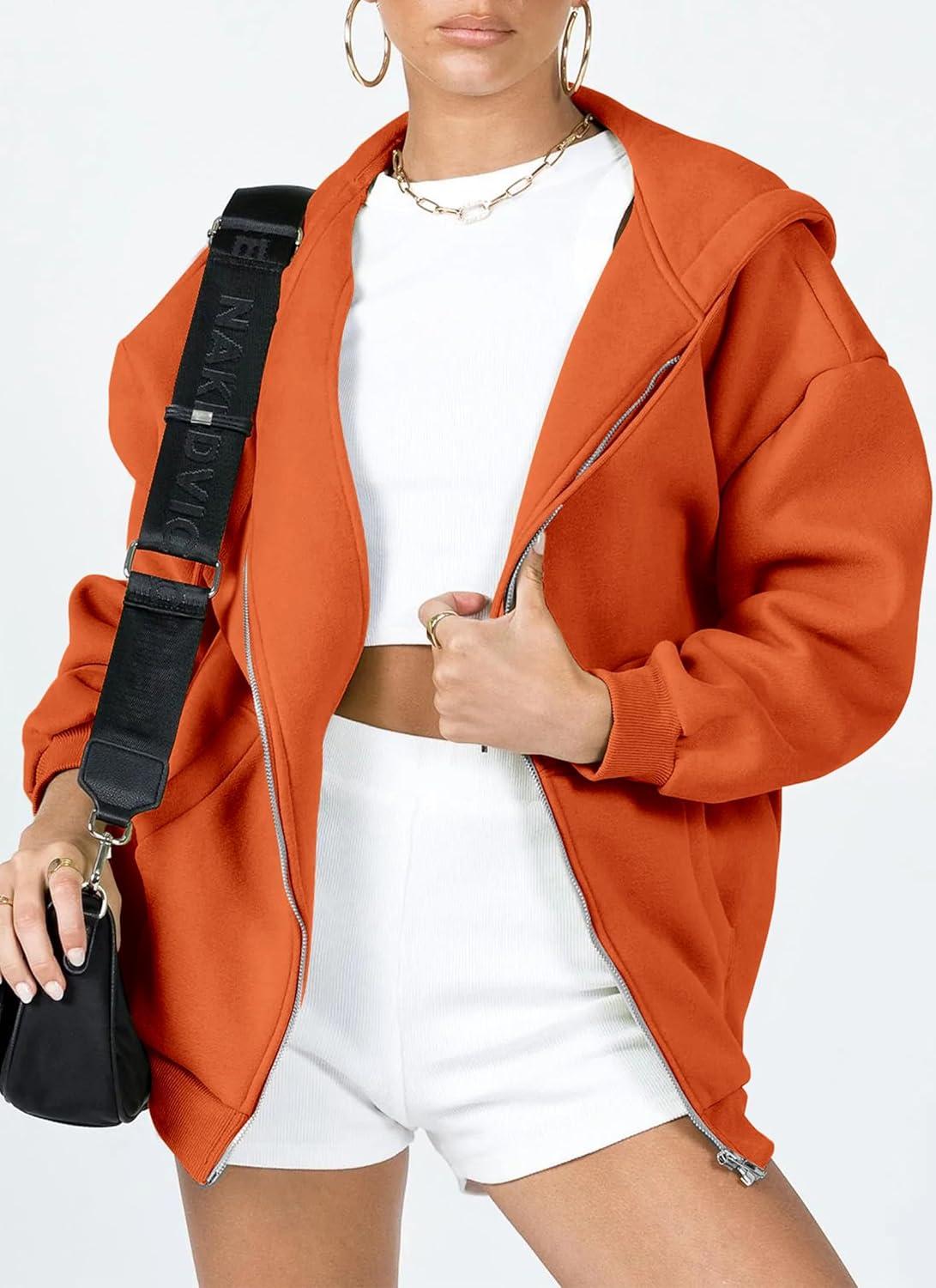 PRETTYGARDEN Women’s 2025 Zip Up Y2K Hoodies Casual Long Sleeve Sweatshirts Fall Spring Track Jackets with Pockets(Orange)