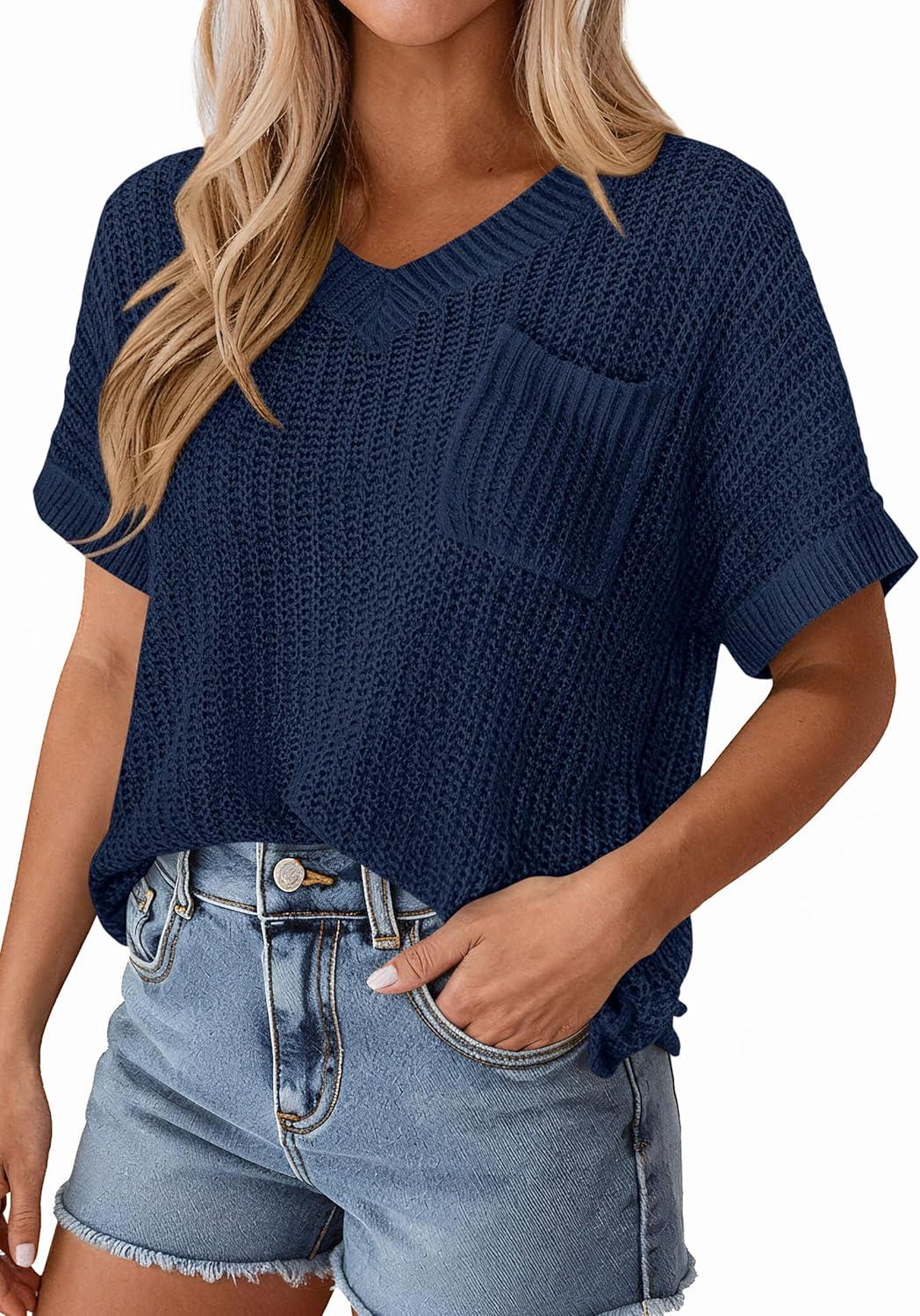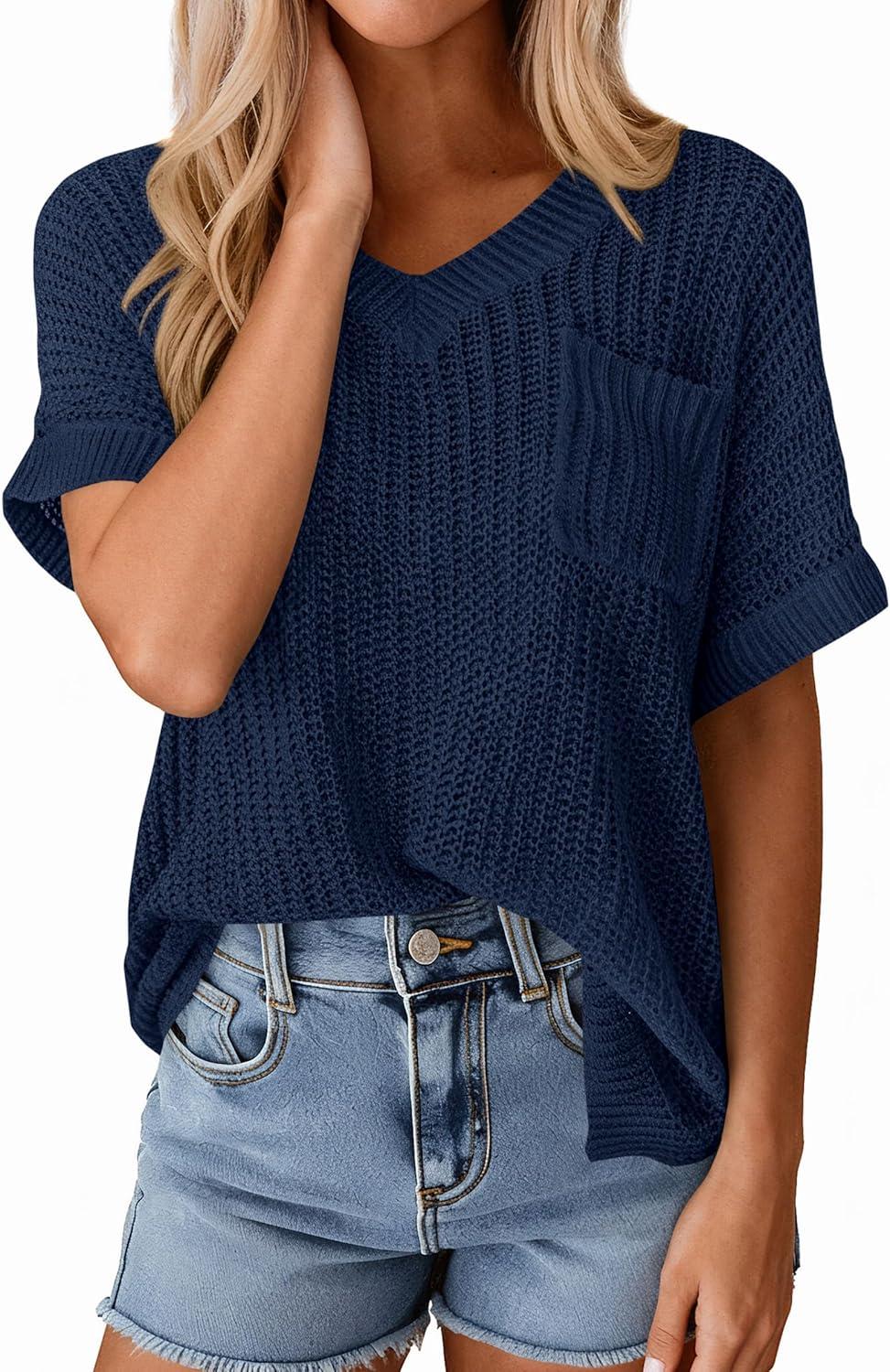 Be the first to review “PRETTYGARDEN Women’s 2026 Spring Short Sleeve Sweaters Lightweight V Neck Casual Going Out Summer Tops Beach Vacation Clothes(Navy Blue)” Cancel reply