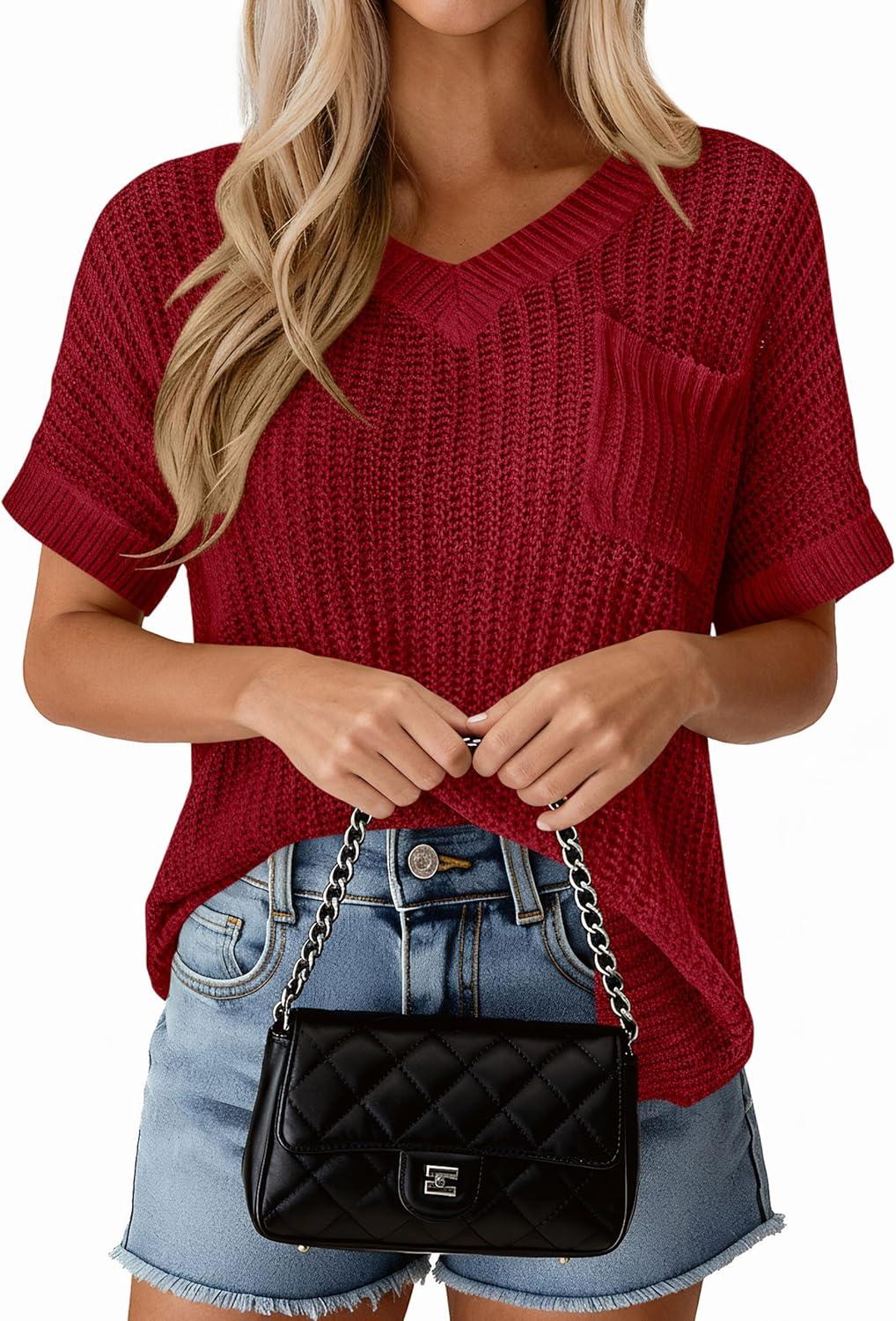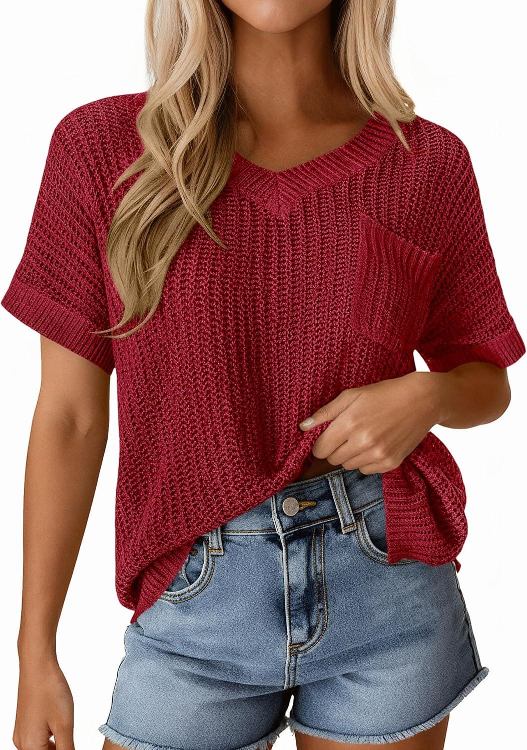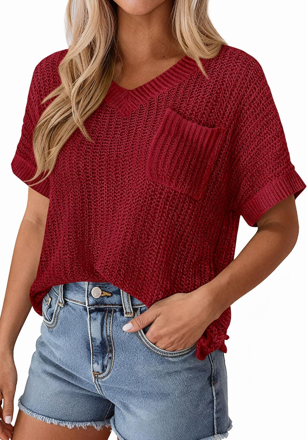 Be the first to review “PRETTYGARDEN Women’s 2026 Spring Short Sleeve Sweaters Lightweight V Neck Casual Going Out Summer Tops Beach Vacation Clothes(Red)” Cancel reply
