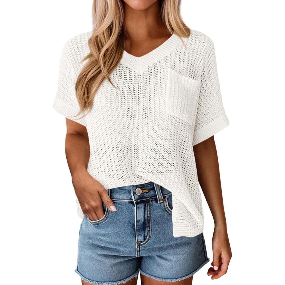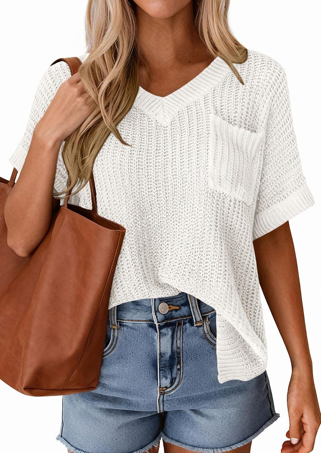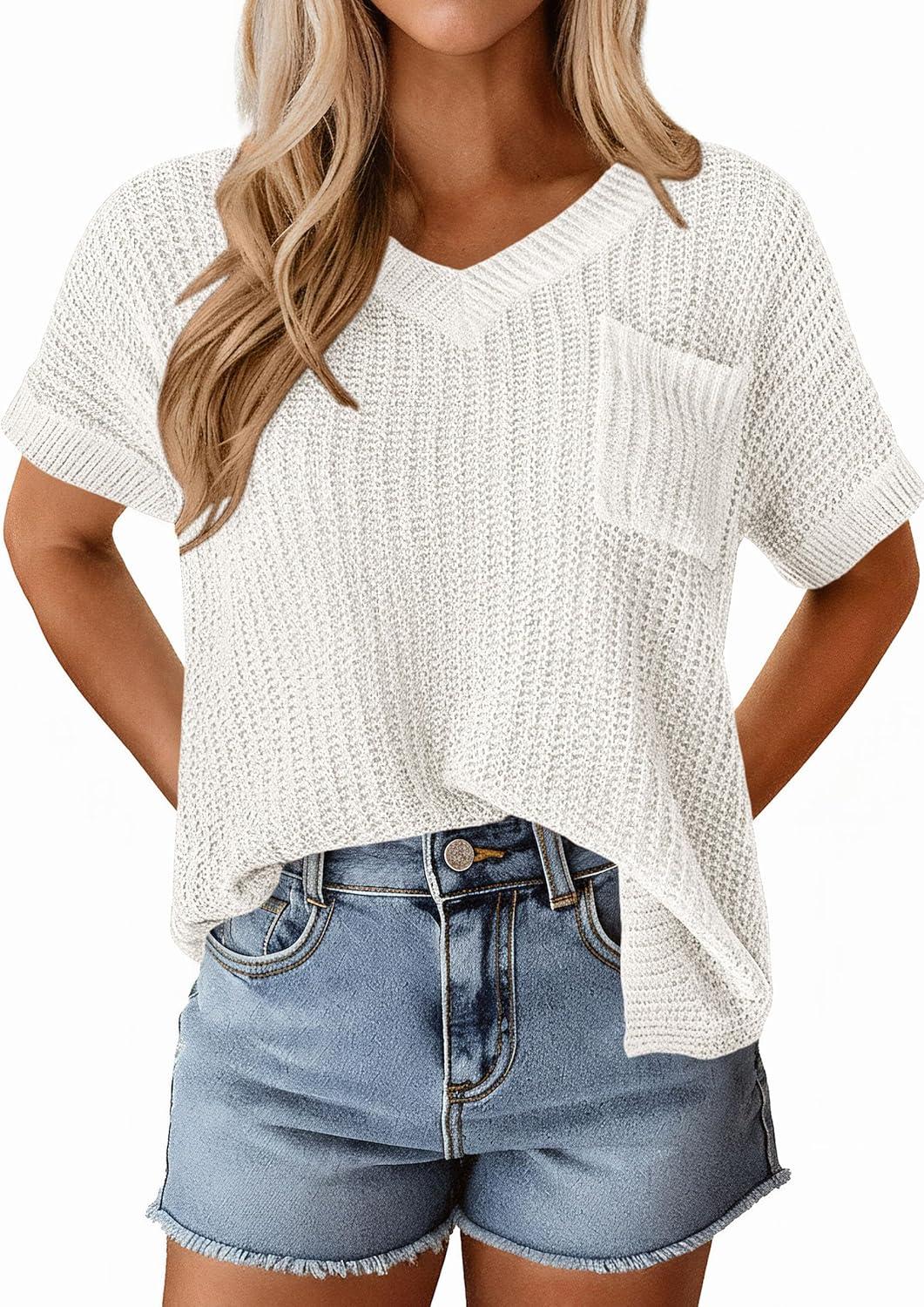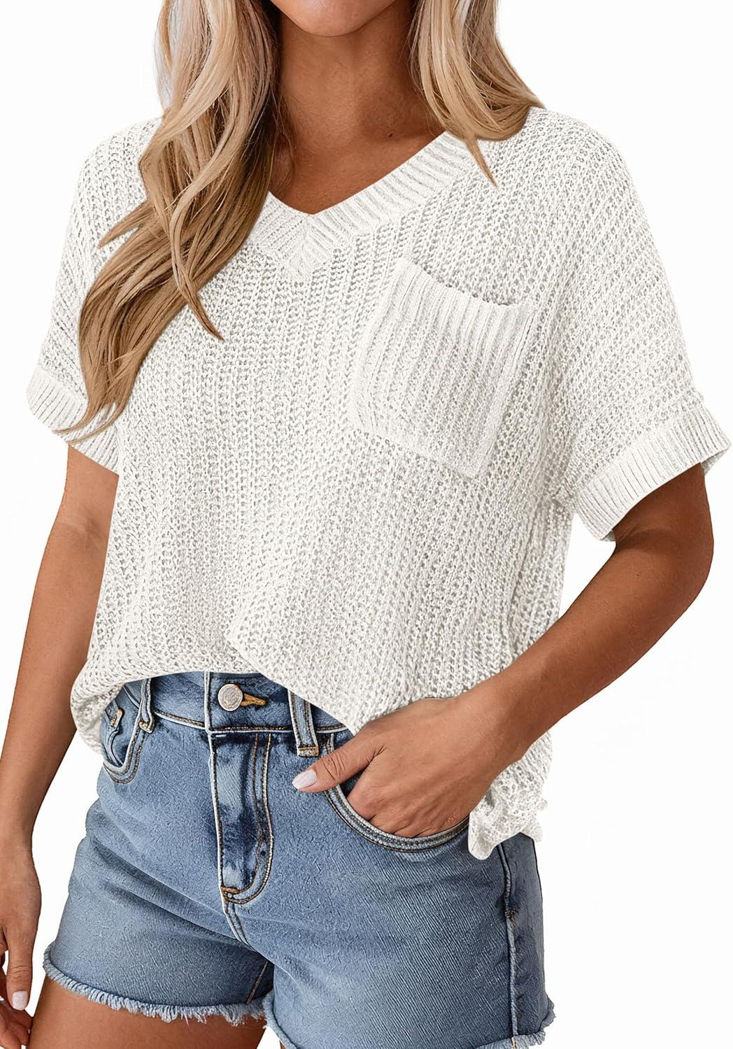 Be the first to review “PRETTYGARDEN Women’s 2026 Spring Short Sleeve Sweaters Lightweight V Neck Casual Going Out Summer Tops Beach Vacation Clothes(White)” Cancel reply