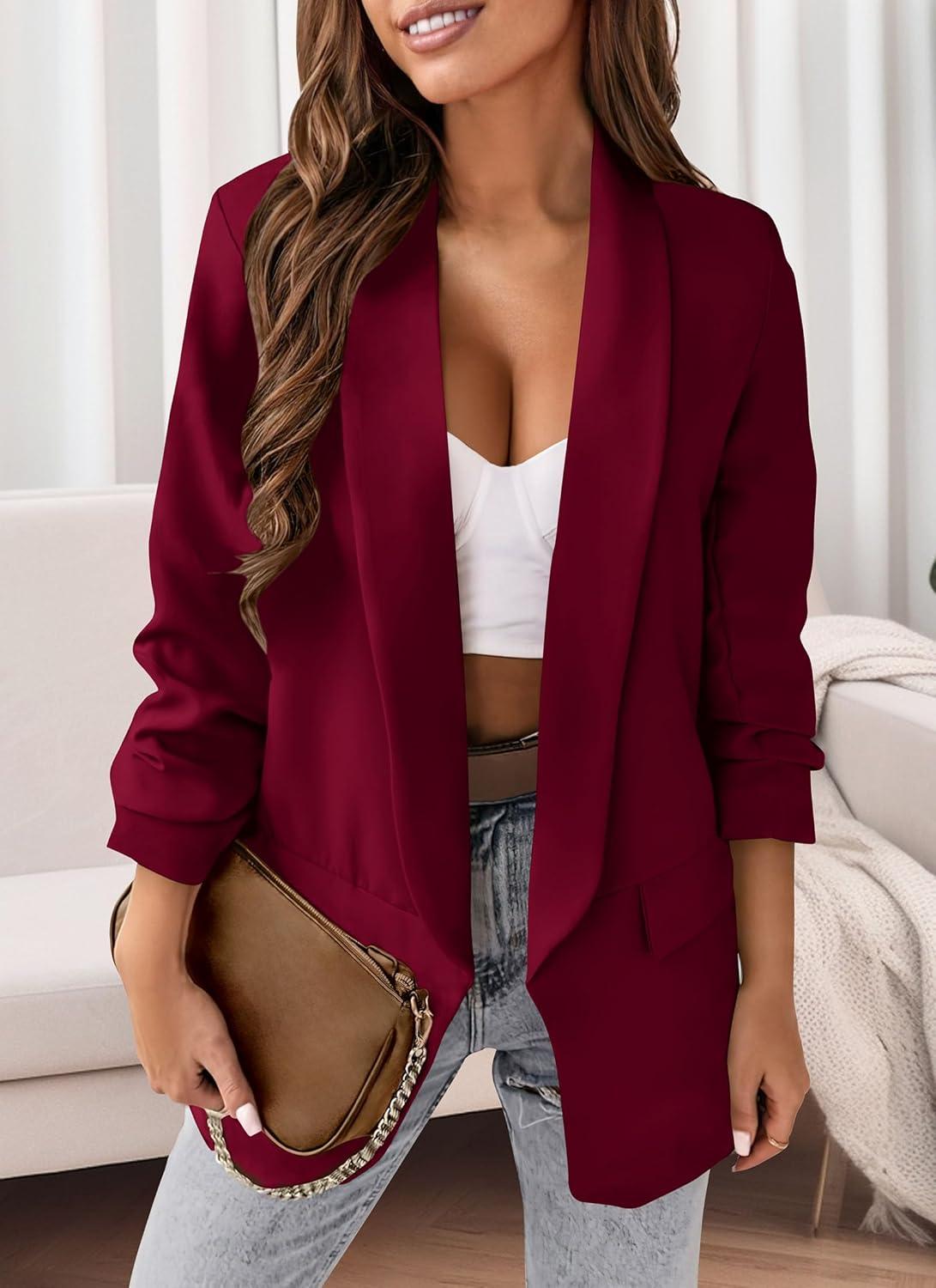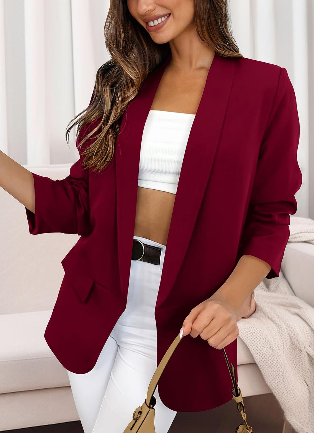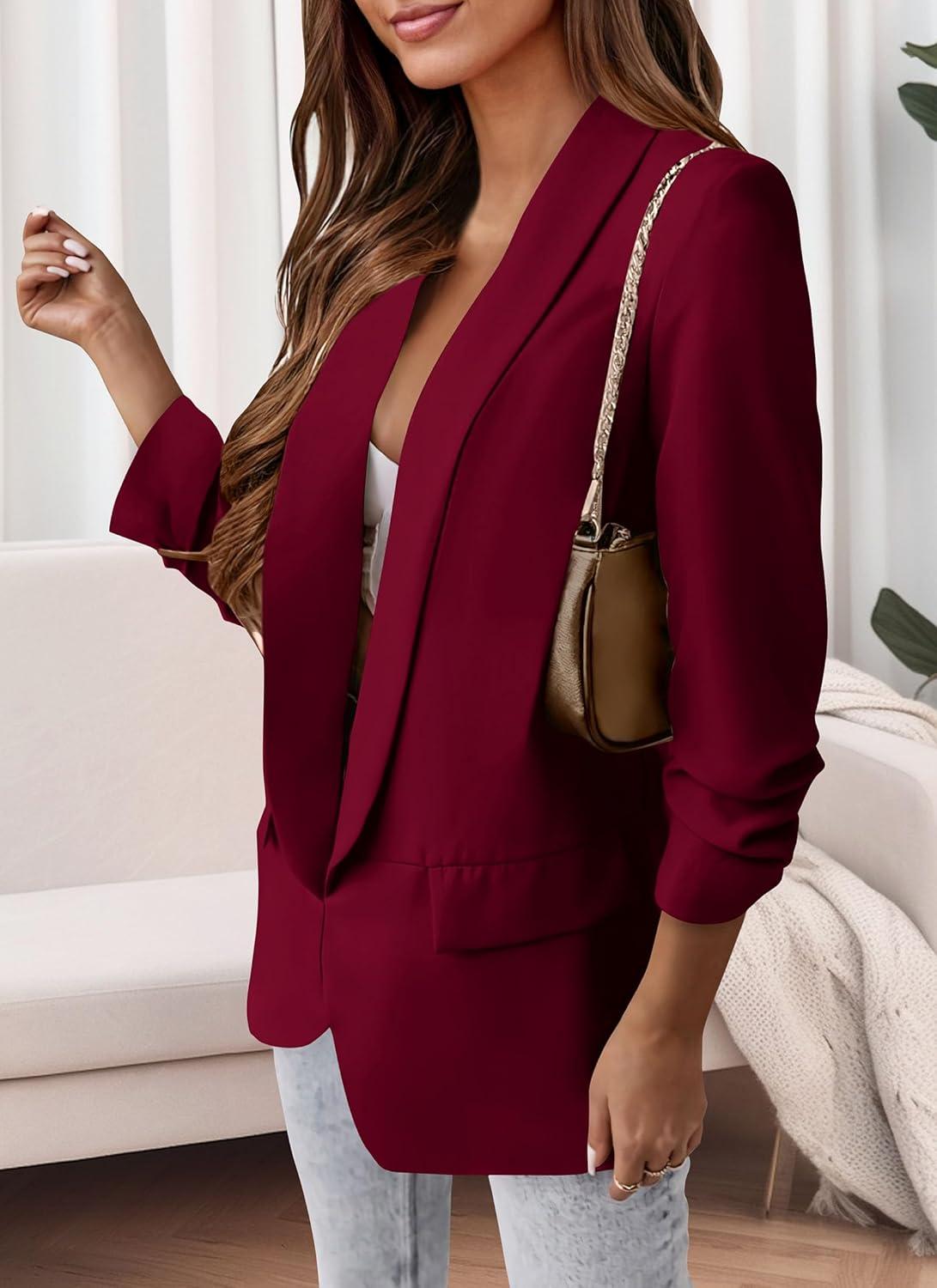 PRETTYGARDEN Womens Casual Blazer 2025 Spring Fall Fashion Long Sleeve Open Front Work Office Suit Jackets(Wine Red)