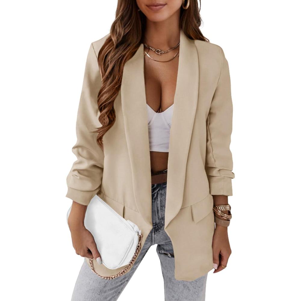 imagePRETTYGARDEN Womens Casual Blazer Spring Fall Fashion Long Sleeve Open Front Work Office Suit JacketsBeige White
