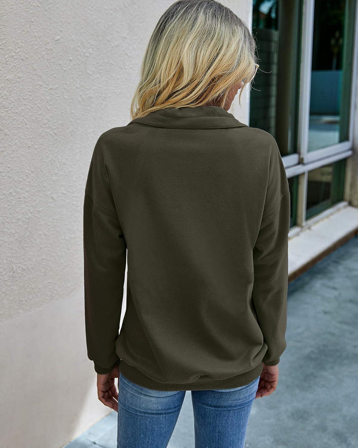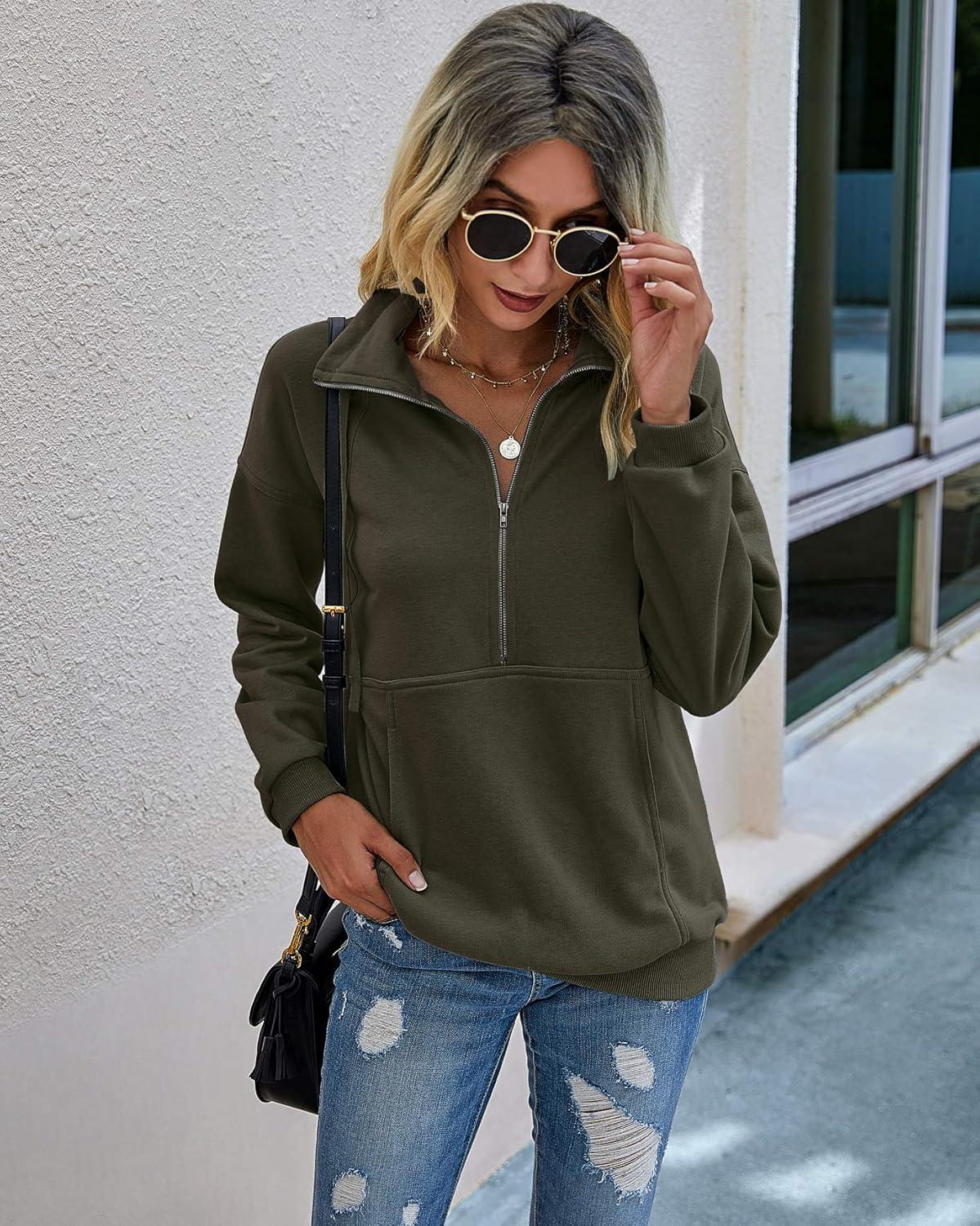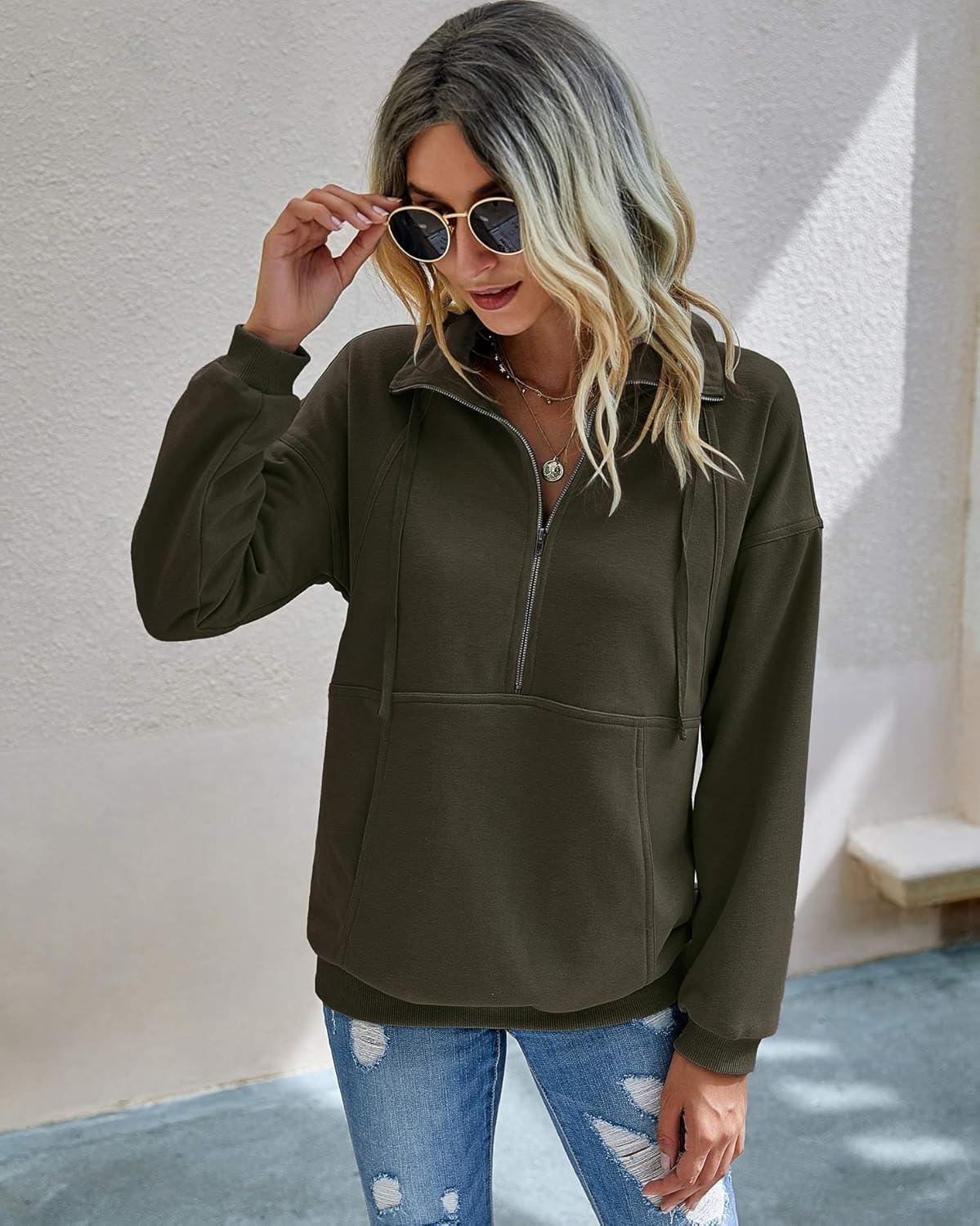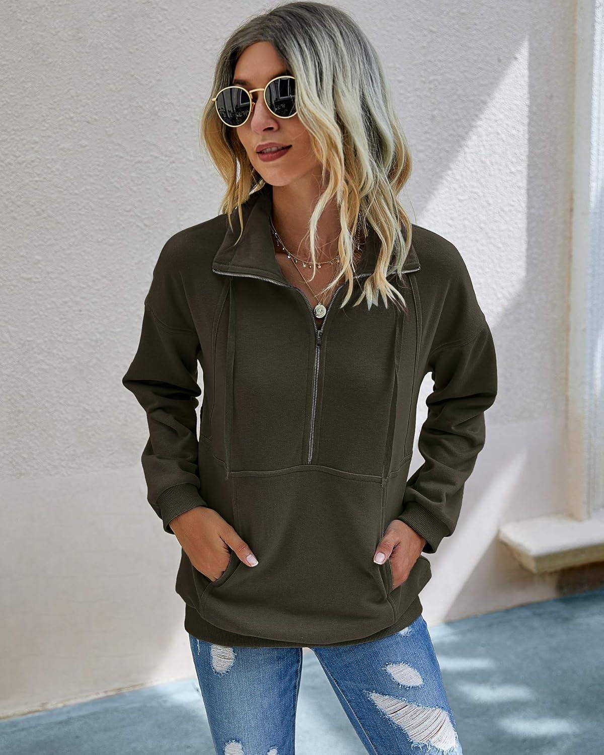 PRETTYGARDEN Women's Casual Long Sleeve Lapel Zipper Sweatshirt Drawstring Loose Pullover Tops(Army Green)