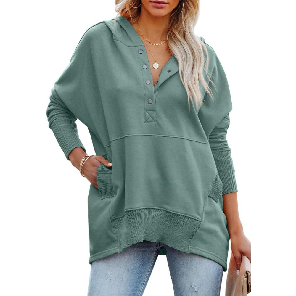 PRETTYGARDEN Women's Casual Long Sleeve Lapel Zipper Sweatshirt Drawstring Loose Pullover Tops(Button Bean Green)