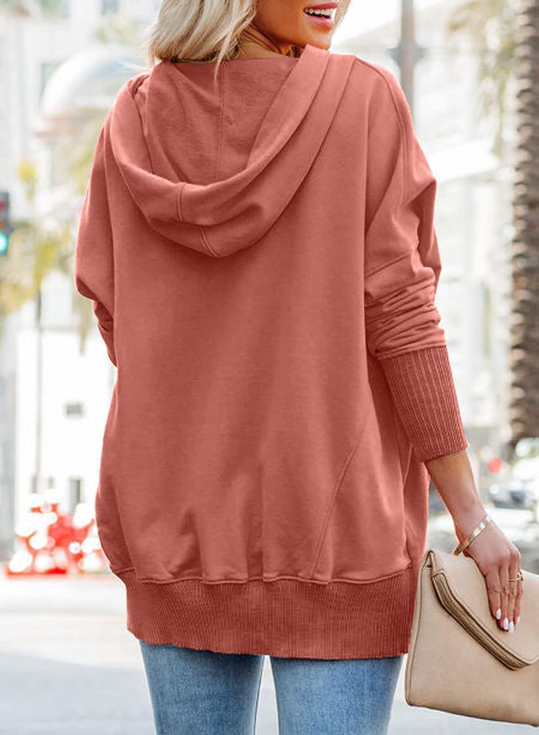 PRETTYGARDEN Women's Casual Long Sleeve Lapel Zipper Sweatshirt Drawstring Loose Pullover Tops(Button Orange Pink)