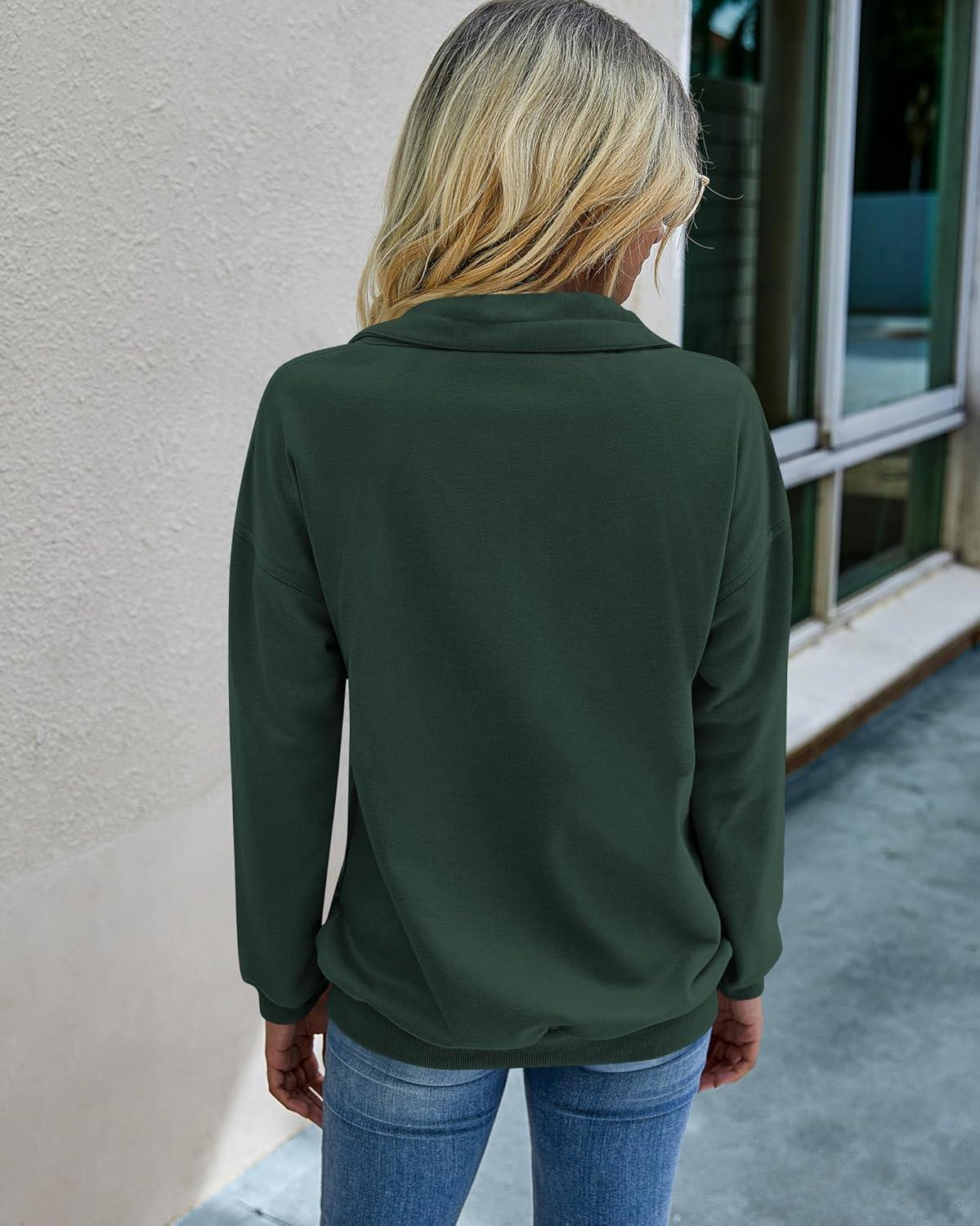 PRETTYGARDEN Women’s Casual Long Sleeve Lapel Zipper Sweatshirt Drawstring Loose Pullover Tops(Dark Green)
