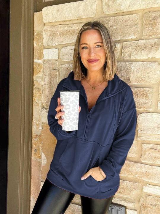 PRETTYGARDEN Women’s Casual Long Sleeve Lapel Zipper Sweatshirt Drawstring Loose Pullover Tops(Navy)