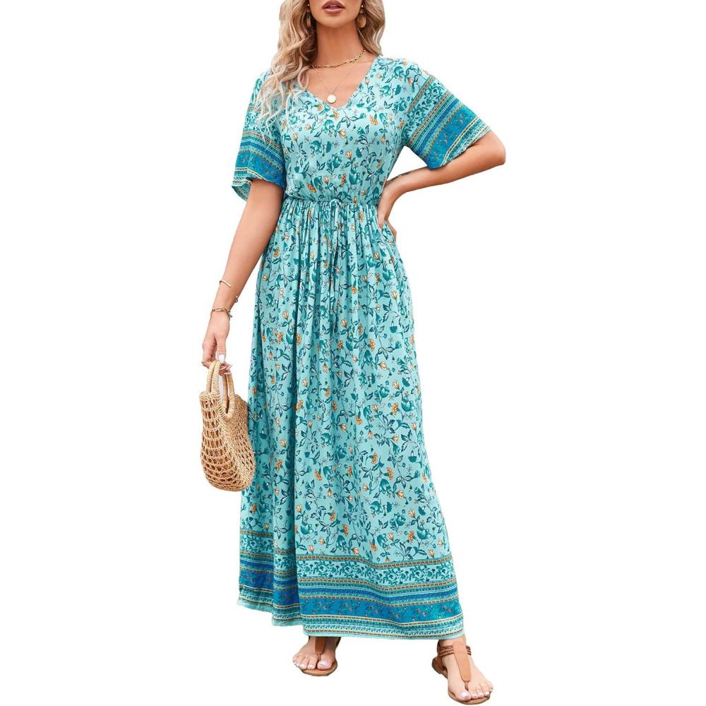 Be the first to review “PRETTYGARDEN Women’s Casual Summer Boho Floral Print Dress V Neck Short Sleeve High Waist Long Maxi Beach Dresses(Green Yellow Floral)”