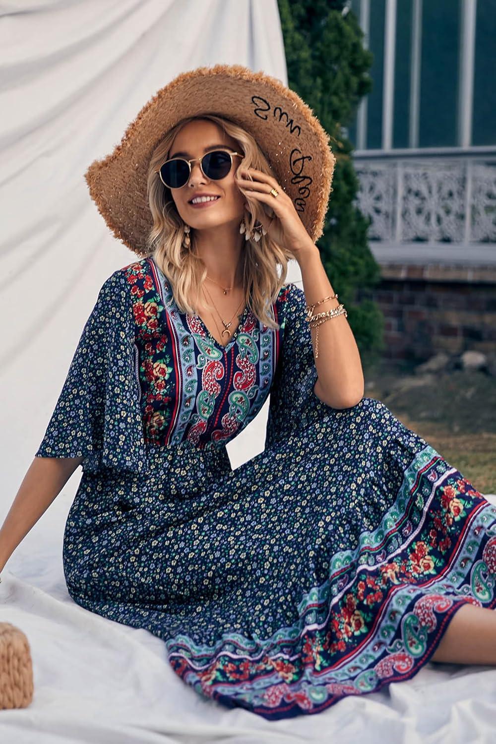 Be the first to review “PRETTYGARDEN Women’s Casual Summer Boho Floral Print Dress V Neck Short Sleeve High Waist Long Maxi Beach Dresses(Navy Floral)”