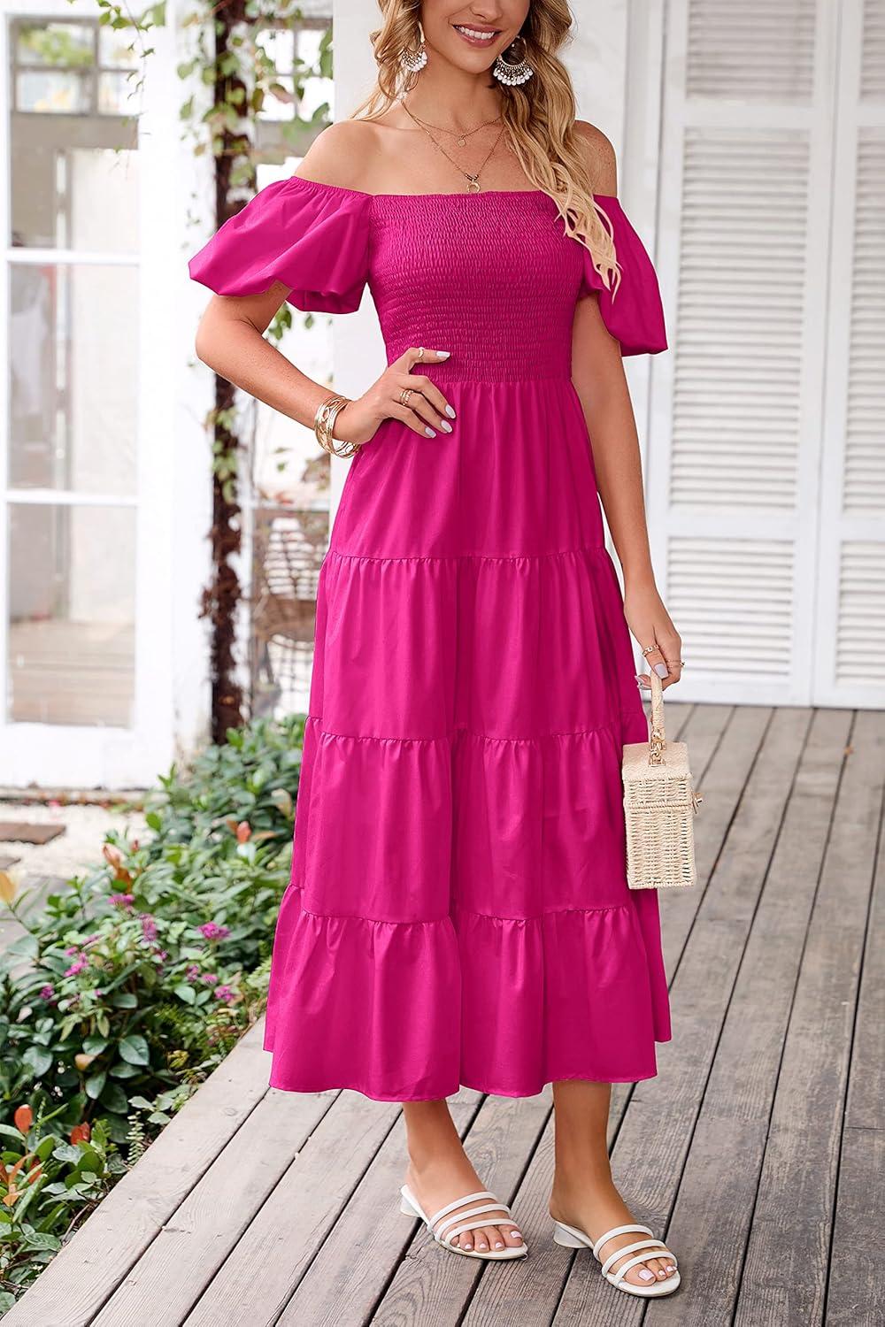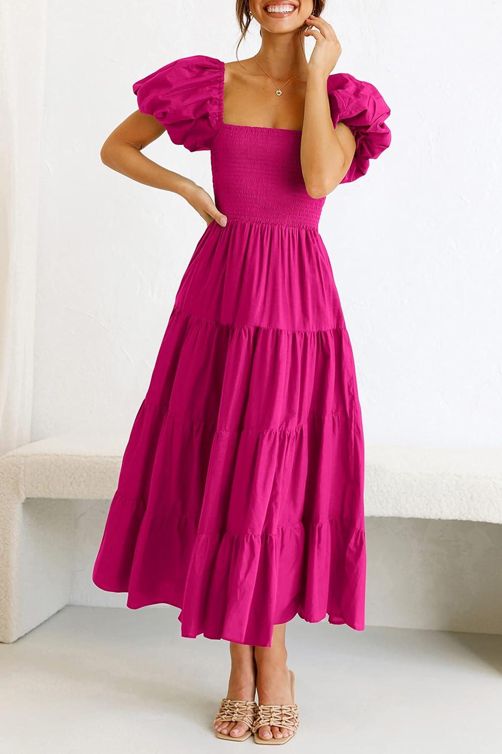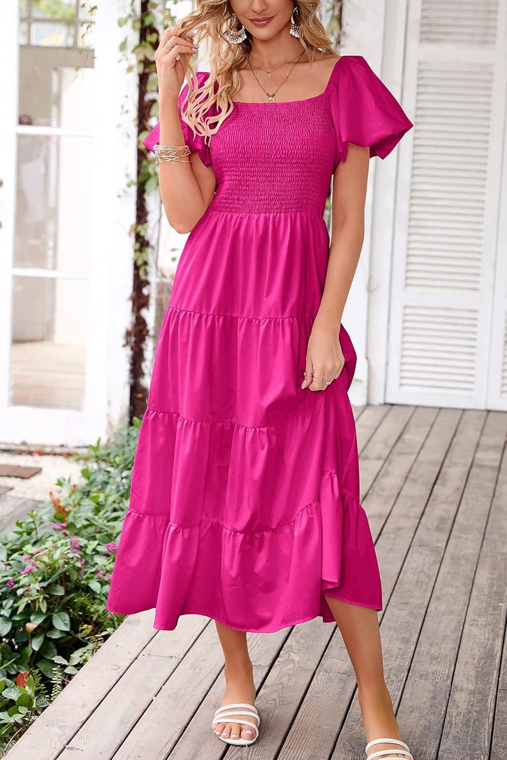 Be the first to review “PRETTYGARDEN Women’s Casual Summer Midi Dress Puffy Short Sleeve Square Neck Smocked Tiered Ruffle Dresses(Dark Rose Red)”
