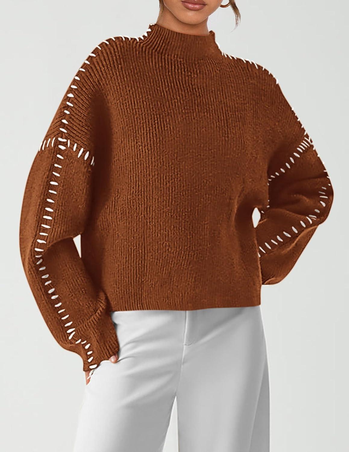 PRETTYGARDEN Women’s Chunky Knit Sweaters 2025 Fall Long Sleeve Mock Neck Oversized Pullover Tops Winter Fashion Clothes(Caramel)