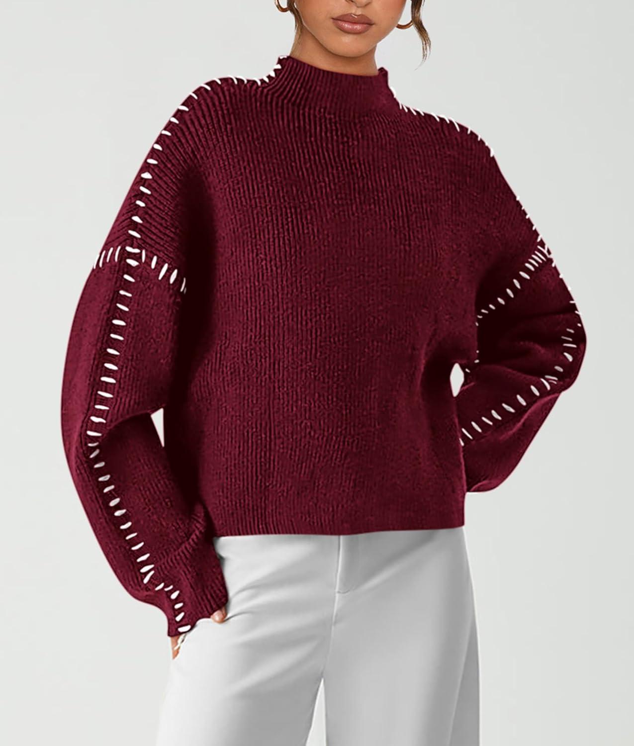PRETTYGARDEN Women’s Chunky Knit Sweaters 2025 Fall Long Sleeve Mock Neck Oversized Pullover Tops Winter Fashion Clothes(Wine Red)