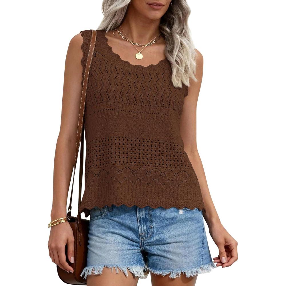 PRETTYGARDEN Womens Crochet Tank Tops 2026 Summer Spring Boho Sleeveless Cute Knit Sweater Vest Trendy Beach Vacation Clothes(Brown)