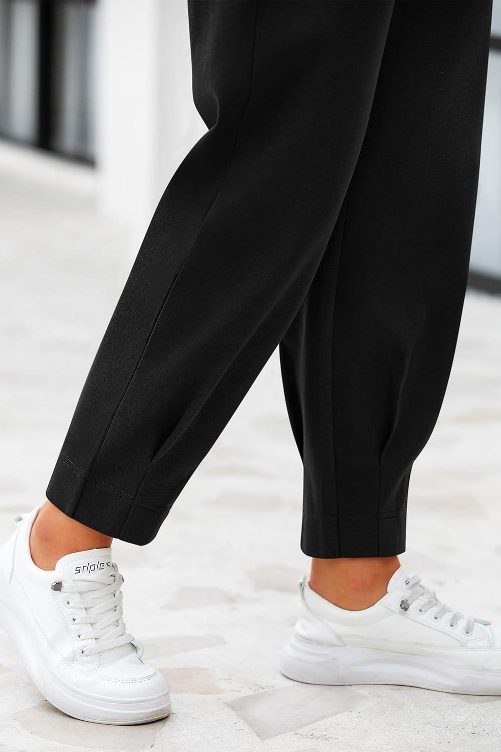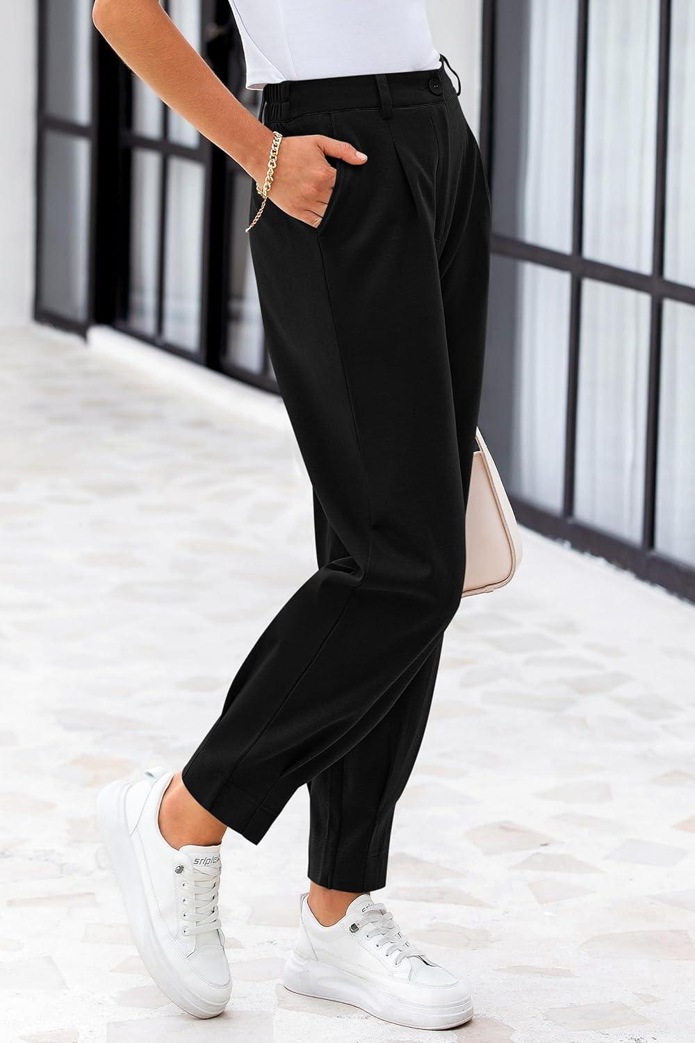 imagePRETTYGARDEN Womens Dress Pants Business Casual 2025 Trendy High Waisted Ankle Length Dressy Trousers Slacks Work ClothesBlack