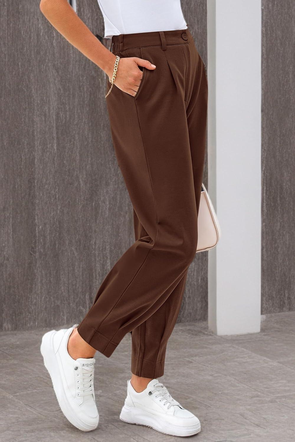 PRETTYGARDEN Womens Dress Pants Business Casual 2025 Trendy High Waisted Ankle Length Dressy Trousers Slacks Work Clothes(Brown)